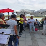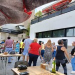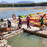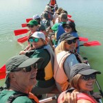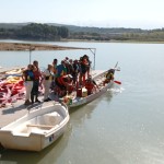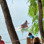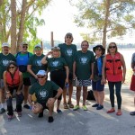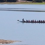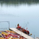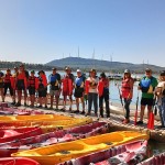 Con gran entusiasmo el equipo de piragüismo, estrenando sus nuevas camisetas, se han dirigido al embarcadero para comenzar la navegación a través de las aguas en calma. El dragón se puso en marcha al ritmo del tambor. Desde la lejanía se oían las risas y los gritos de ánimo de los participantes. Daba la impresión de que se lo pasaban muy bien.