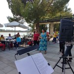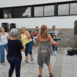 Acabada la comida, los asistentes se dirigieron a la terraza donde se estaba instalando el grupo de música para el baile. Entre tanto, unos tomaban café y charlaban y otros paseaban. Comenzó el baile amenizado por MOMENTOS Diego García & García Luife. La buena música desencadenó la pasión por el baile entre chicas y chicos. Tanta juventud acumulada desató sobre la pista una gran ola festiva. La tarde pasó rápido al ritmo de la música y el baile y llegado el momento de marchar, nadie quería irse.
