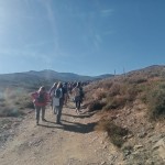 Camino el último de los 44, atrás dejo la huella que no volveré a pisar, prende en mí el sentir del vagabundo. Desde la retaguardia puedo controlar cualquier incidencia del grupo, una columna de caminante de jóvenes maduros algunas con piernas largas y ágiles, otros con el paso corto, sosegado apoyado en el bastón, todos avanzan dibujando la geometría de la ladera.
