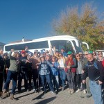 Después de cuatro horas de caminata en la bajada de la cuesta se divisa una pequeña mancha blanca, allí en el secaral aparcado como un bote salvavidas, el bus de Leo que nos llevara a la Bodega y a la posterior cata de vinos de la tierra y a los deliciosos manjares de embutidos y quesos de la comarca y migas de pan.