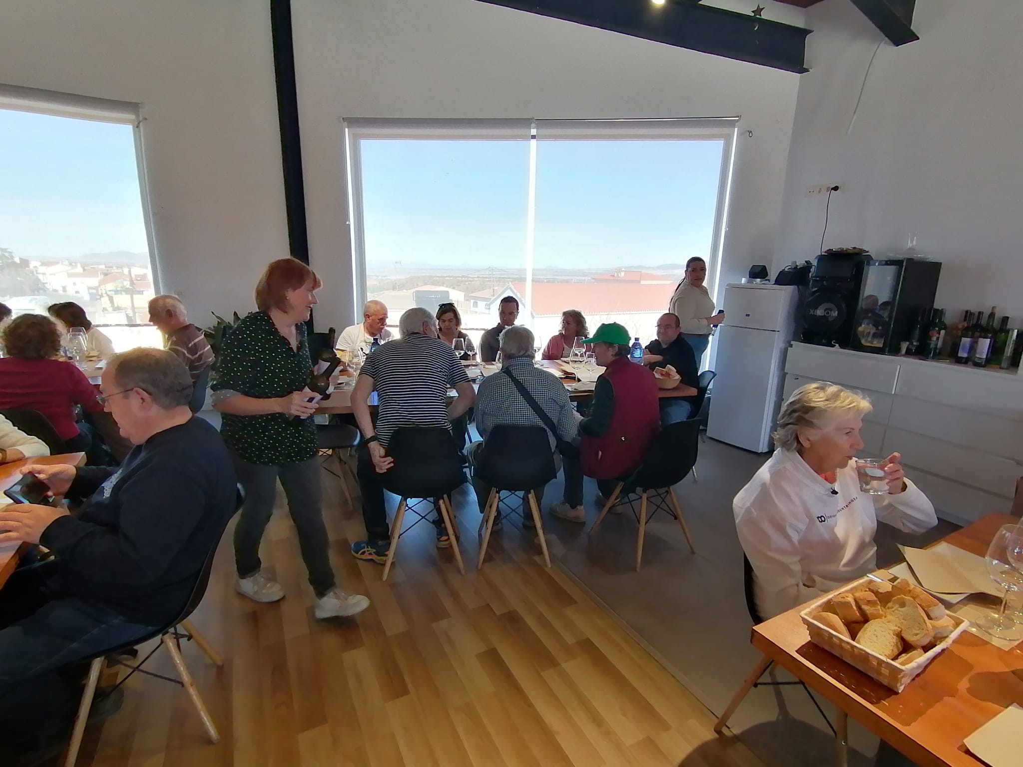 Después de cuatro horas de caminata en la bajada de la cuesta se divisa una pequeña mancha blanca, allí en el secaral aparcado como un bote salvavidas, el bus de Leo que nos llevara a la Bodega y a la posterior cata de vinos de la tierra y a los deliciosos manjares de embutidos y quesos de la comarca y migas de pan.