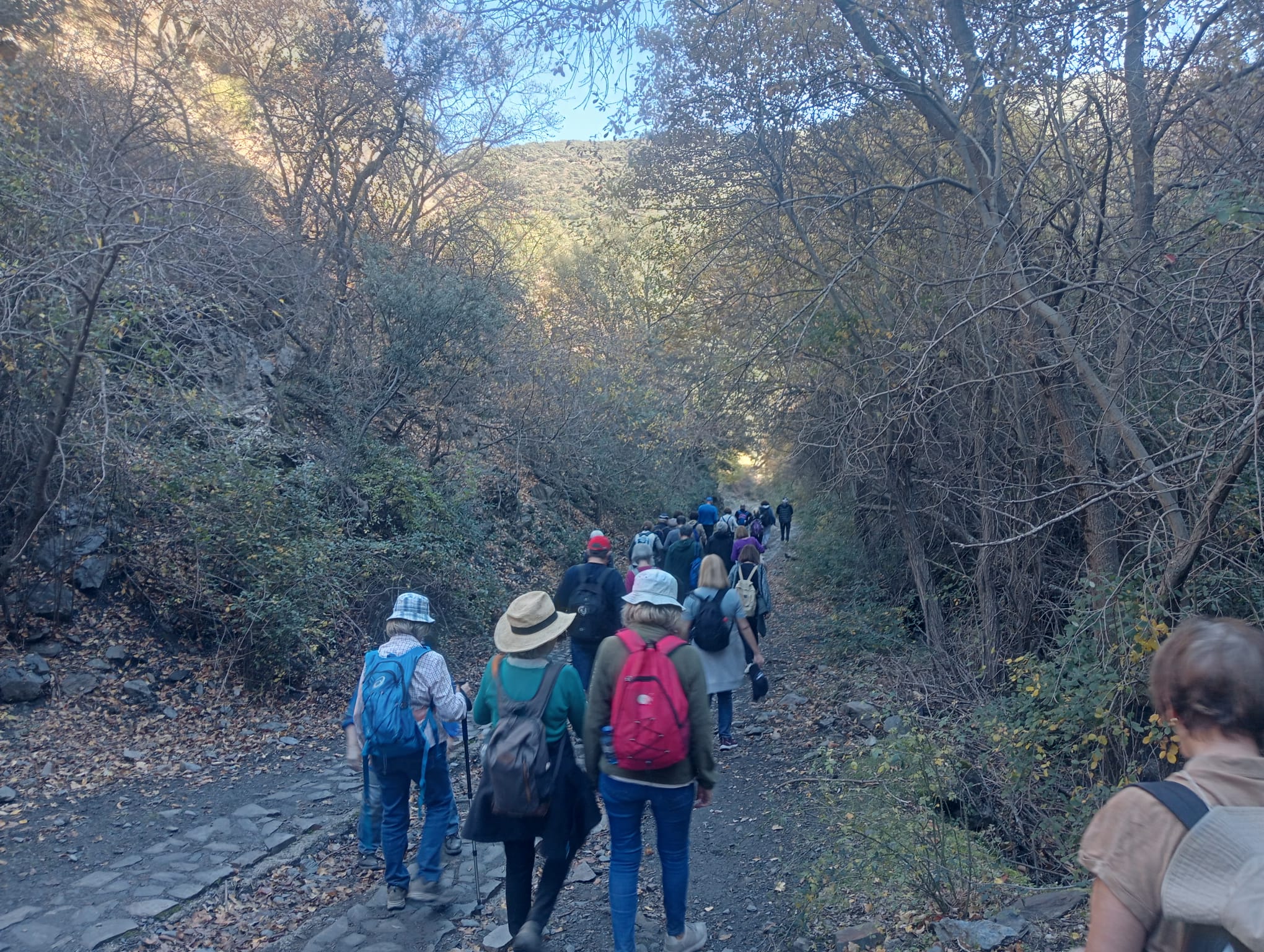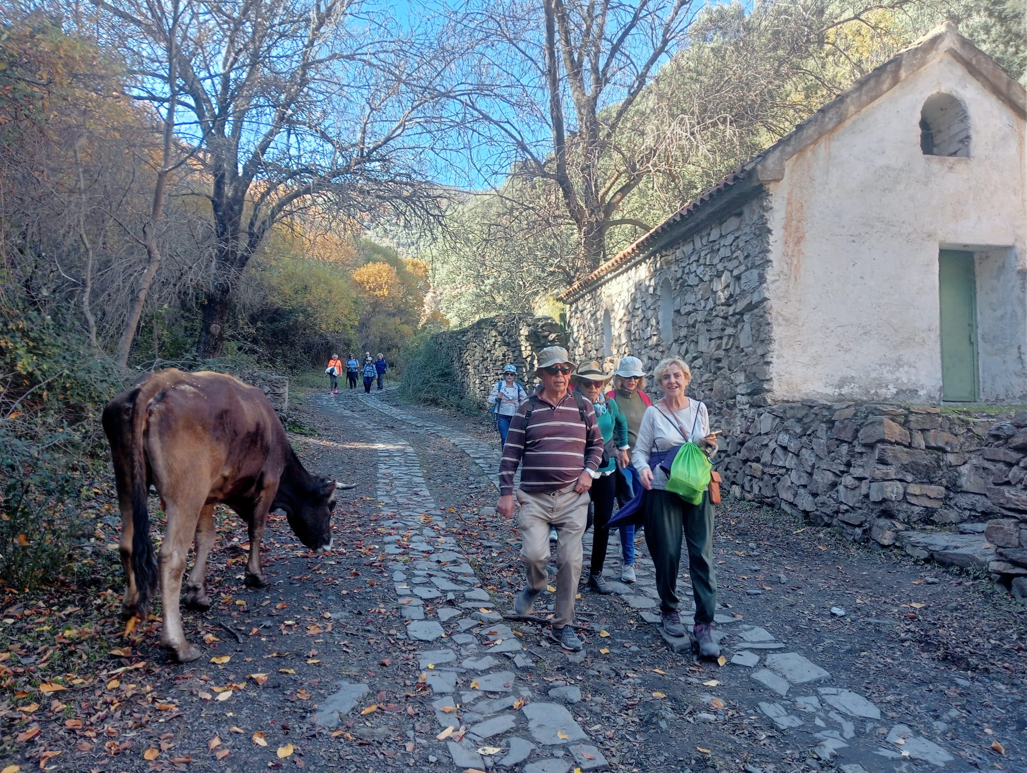 Continuamos caminando y con conversaciones unas veces con la profesora Mireya Viladelvall de la Universidad Autónoma de Ciudad de México que nos ha acompañado en la excursión y otra con mi amigo y compañero Antonio Rubiño, estudiante del Aula (APFA), charlas instructivas sin ninguna pretensión ni desenlace. La edad de la jubilación nos ha cambiado el ritmo de entender el mundo y valoraros lo auténtico. Tenemos ganas de estar libres, huir de las polémicas absurdas de la política, de las discusiones sin sentido, en fin, no es nuestro tiempo, pertenece a los más jóvenes igual que las hojas mueren inevitablemente en el otoño, nosotros irremediablemente somos fugaces en esta corta vida.