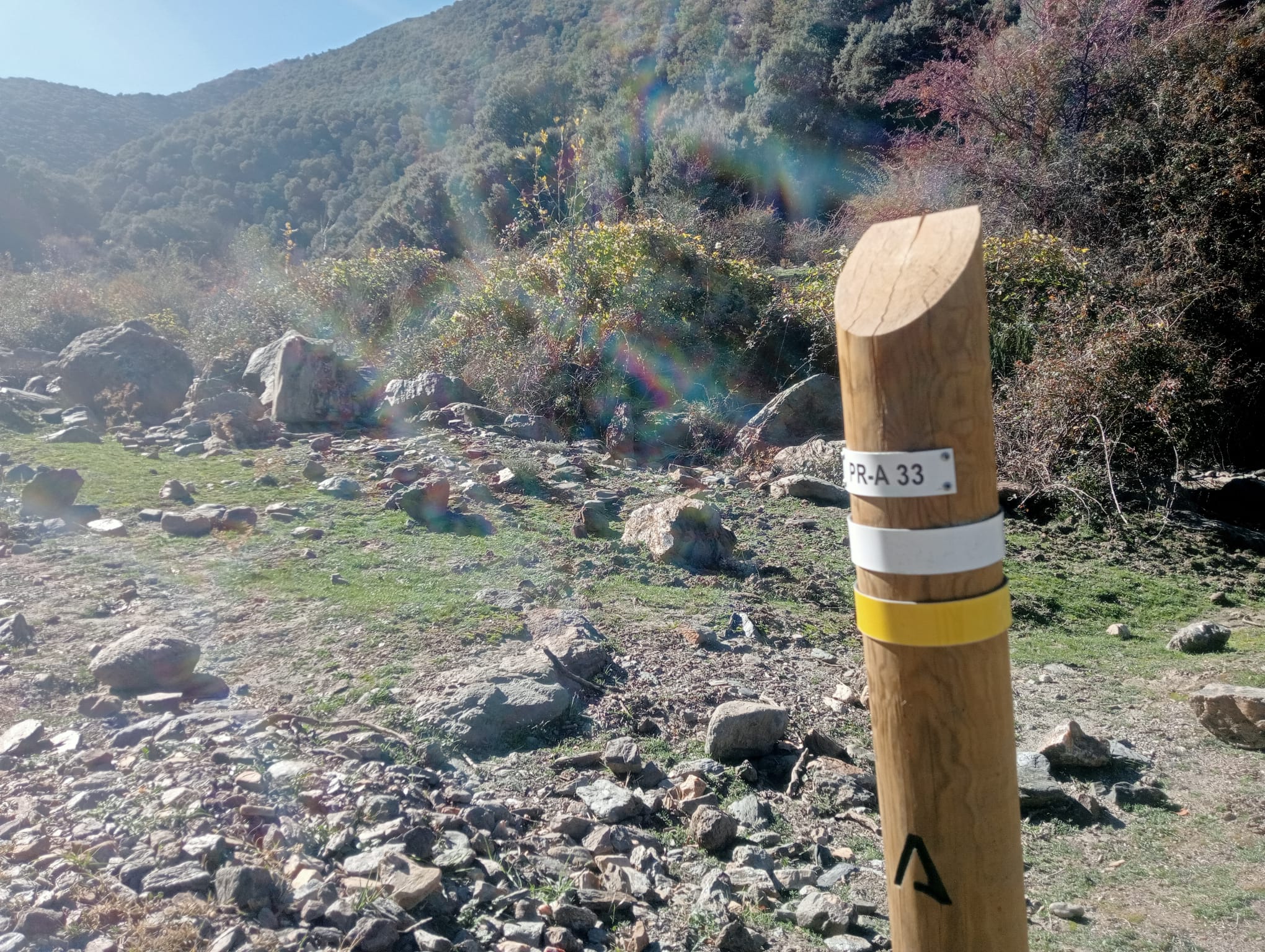 Camino el último de los 44, atrás dejo la huella que no volveré a pisar, prende en mí el sentir del vagabundo. Desde la retaguardia puedo controlar cualquier incidencia del grupo, una columna de caminante de jóvenes maduros algunas con piernas largas y ágiles, otros con el paso corto, sosegado apoyado en el bastón, todos avanzan dibujando la geometría de la ladera.