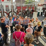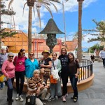 Muy cerca del Hotel, por el camino vamos contemplando casas de personajes famosos. Ya en la ciudad iniciamos la visita por la calle O’Dally, y nos detenemos delante de edificios construidos con rocas volcánicas muy interesantes y bonitos. Cabe mencionar un edificio donde se alberga la Diputación del Común, algo muy especial, lo que es hoy el Defensor del Pueblo parece ser que fue uno de los primeros organismos democráticos en la historia. Llegamos a la Plaza del Salvador con la Iglesia renacentista y un artesonado mudéjar espectacular. De aquí a la plaza de S. Francisco y a la Alameda, donde nos fotografiamos con la Estatua del Enano y el Barco de la Virgen.