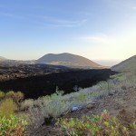 También vemos muchas plantas, la mayoría desconocidas para nosotros , pero que Jaime va identificando: la vinagrera , especie nativa de La Palma y endémica de Canarias y la Macaronesia (Región Biogeográfica distinta de la Región Mediterránea, la nuestra) y la primera que llega a arropar este manto negro que deja la lava colonizando los terrenos volcánicos; el cerrajón de la Palma, agave oriundo de México y el verol o verode… ¿y cómo no? siempre alguna invasora que lo cubre todo y no deja a las demás desarrollarse …el rabo de gato.