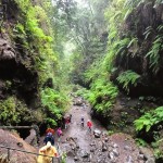 Durante el camino nos vamos adentrando en el bosque de laurisilva en el que abundan el til, el laurel, la falla o haya, madroños, barbusanos, yedras….y la espectacular flor Canarina canariensis…. Y después del paso por una estrecha carretera, iniciamos la ruta a pie hasta llegar a la cascada, en un día de chipi-chipi que le añade encanto al sendero donde además de la laurisilva, abundan los grandes helechos…Un sitio de gran belleza.
