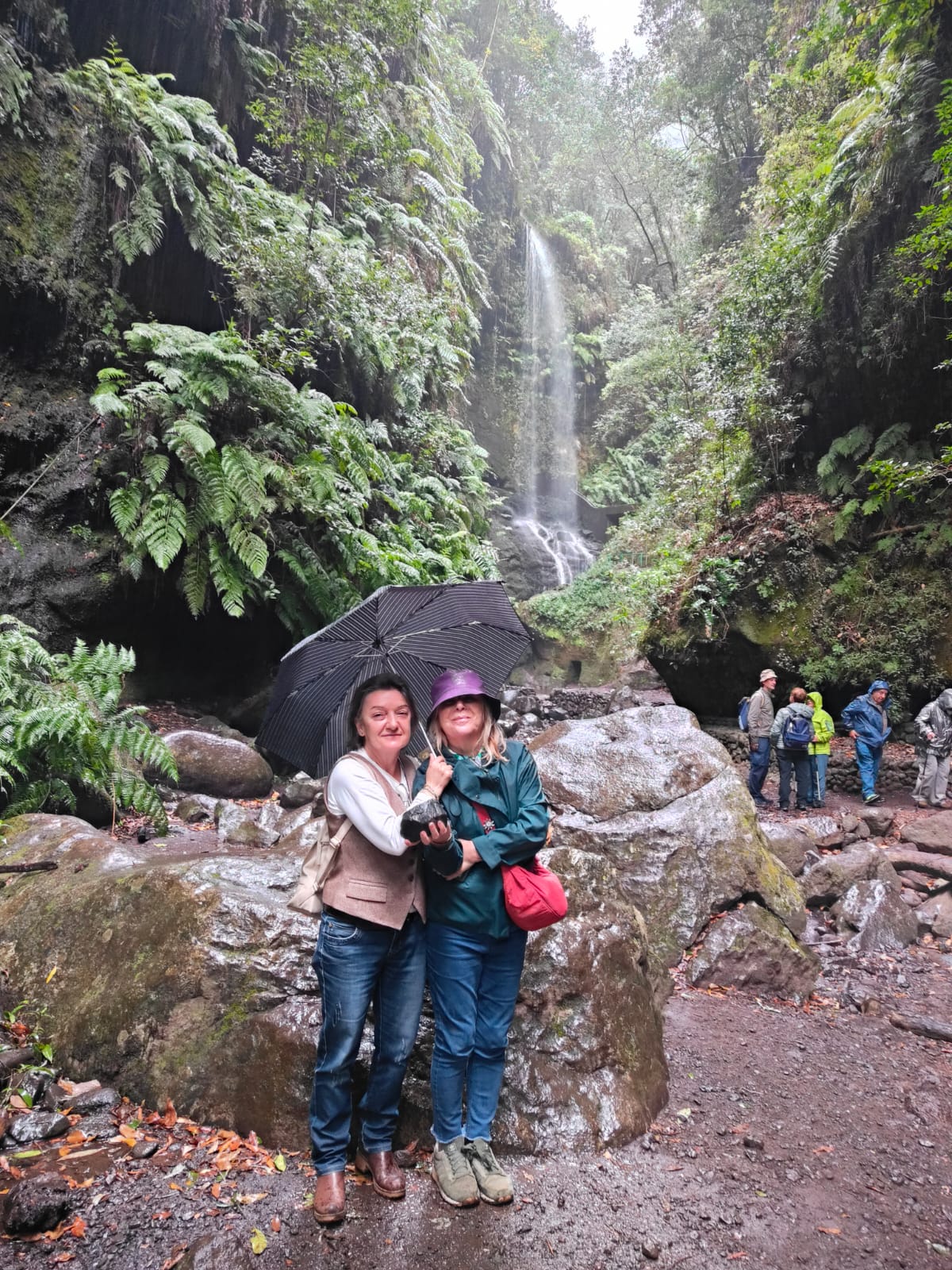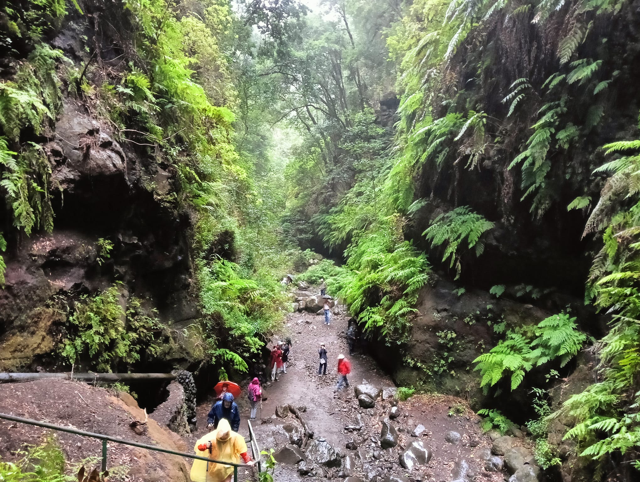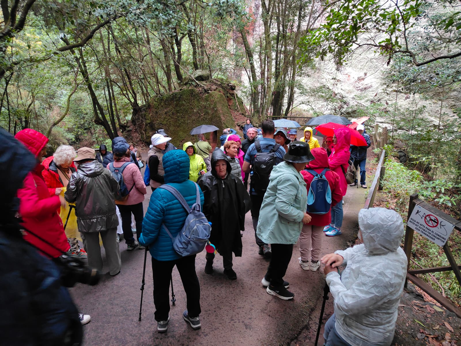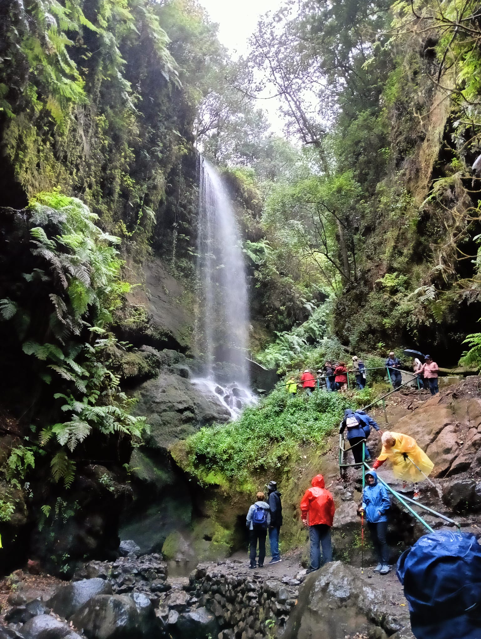 Durante el camino nos vamos adentrando en el bosque de laurisilva en el que abundan el til, el laurel, la falla o haya, madroños, barbusanos, yedras….y la espectacular flor Canarina canariensis…. Y después del paso por una estrecha carretera, iniciamos la ruta a pie hasta llegar a la cascada, en un día de chipi-chipi que le añade encanto al sendero donde además de la laurisilva, abundan los grandes helechos…Un sitio de gran belleza.