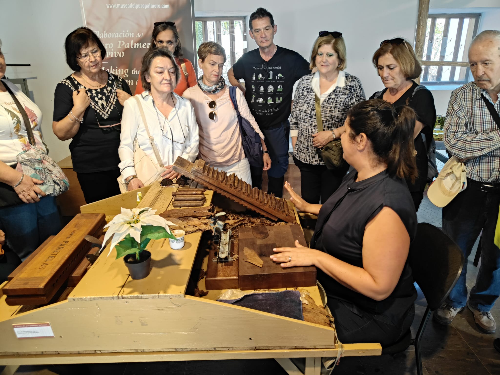 Hoy, día 25 de Noviembre y penúltimo día de viaje, nos dirigimos a Breña Alta para visitar el Museo del Puro Palmero y la Fiesta de las Cruces, añoranza para los granadinos de cuando Granada era una importante productora de tabaco; hoy solo quedan los recuerdos y las manos hábiles que aún saben elaborar los famosos puros de La Palma. En la reducida sala de las Cruces se exponen las seis mejores de cada año, destruyéndose posteriormente para ser sustituidas por las siguientes. Originales y espectaculares exigen una laboriosidad y mano de obra impresionantes.