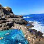 Una vez visto el Centro de Interpretación donde sus fabulosos carteles nos terminan de dar las últimas pinceladas a los conocimientos que estamos adquiriendo, nos dirigimos a la plaza de Los Sauces y S. Andrés , donde después de una breve parada con un buen café servido por un amable palmero, iniciamos una bonita ruta litoral, conociendo plantas tales como la yerbamora, el vejeque, verode, euforbias, lechuga de mar (comestible), para llegar al Charco Azul, otro maravilla natural, donde lo único que faltó fue tiempo para disfrutar de un baño en sus trasparentes y azules aguas. Salimos por S. Andrés y nos trasladamos a Barlovento, para una bien merecida comida.