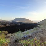 También vemos muchas plantas, la mayoría desconocidas para nosotros , pero que Jaime va identificando: la vinagrera , especie nativa de La Palma y endémica de Canarias y la Macaronesia (Región Biogeográfica distinta de la Región Mediterránea, la nuestra) y la primera que llega a arropar este manto negro que deja la lava colonizando los terrenos volcánicos; el cerrajón de la Palma, agave oriundo de México y el verol o verode… ¿y cómo no? siempre alguna invasora que lo cubre todo y no deja a las demás desarrollarse …el rabo de gato.