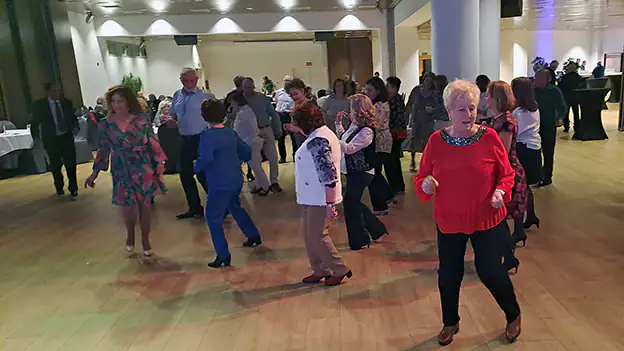 Y claro… ¡el baile!, amenizado y animado por el dúo Momentos. Con la música se desató la locura, no solo se bailaba en la zona reservada para él, los asistentes bailaban por toda la sala al ritmo pegadizo y alegre de la música de nuestra juventud.