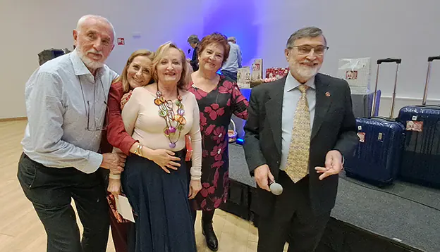 Han asistido a nuestra comida, aparte de los socios y familiares, el director del APFA, Juan Antonio Maldonado, los profesores Miguel Guirao y José María Roa, el director del Coro del Aula, Pedro Antonio Pérez y el coordinador de la tertulia, profesor Luis de la Rosa. Asimismo entre los presentes estaba el cantante de tangos Osvaldo Jiménez y esposa.