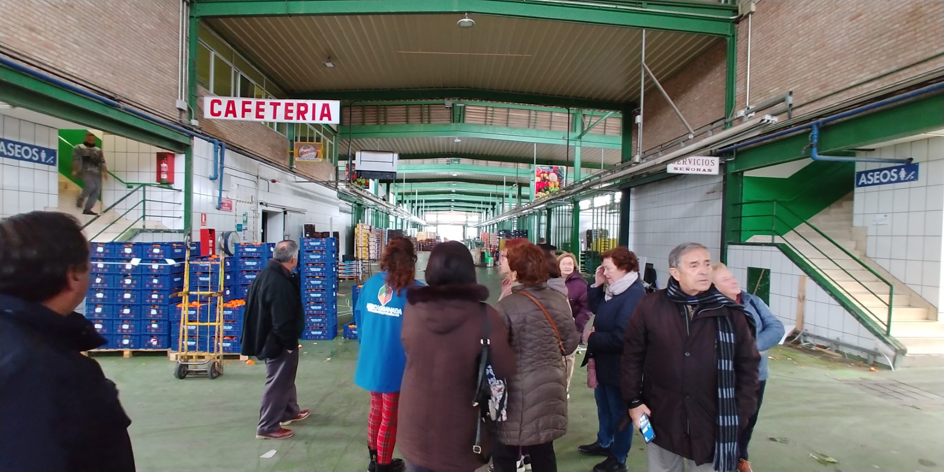 Tras una foto grupal en agradecimiento, nos despedimos de las personas del Banco de Alimentos y continuamos la visita a las instalaciones de MERCAGRANADA, explorando las naves de frutas, verduras y pescado. Aunque en ese momento la actividad estaba pausada y solo algunos operarios realizaban tareas de limpieza, resultaba difícil imaginar la frenética actividad que caracteriza las primeras horas de la jornada.