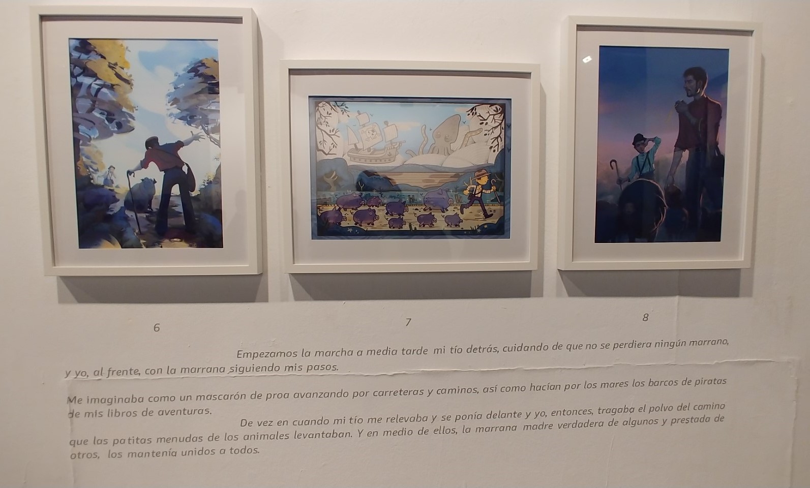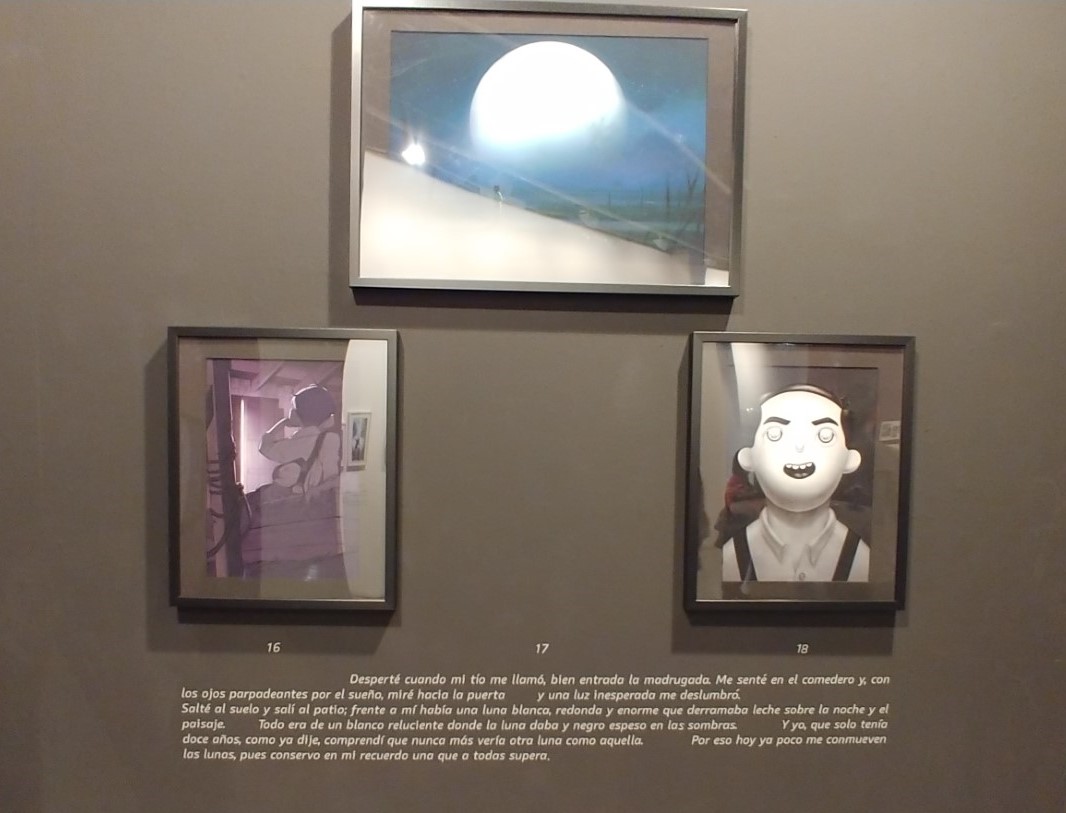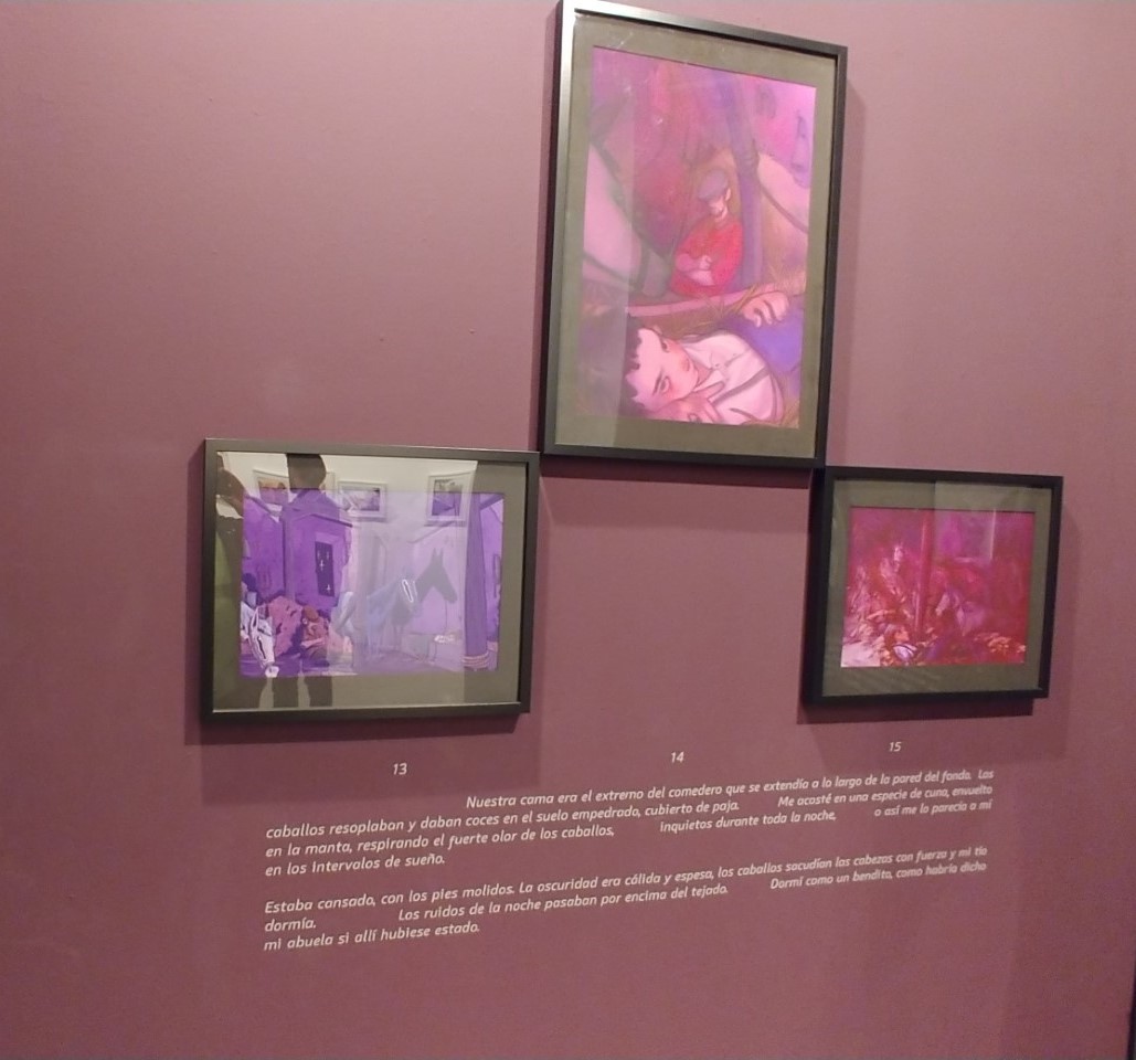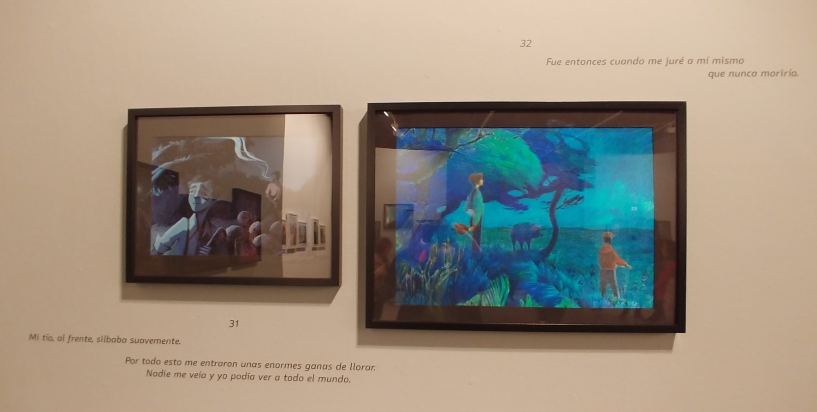 La ilustración de la exposición está dividida en 33 momentos del relato. Generando una traducción VISUAL de la historia muy bien hiladas entre sí.