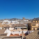 Entre las calles Buensuceso y Paz, descubrimos el palacio del Conde de la Jarosa, actual sede del Instituto Confucio y el Centro de Lenguas Eslavas. Al adentrarnos en su interior, quedamos impresionados por la arquitectura, los primorosos suelos de teselas y la sorprendente azotea, un auténtico mirador que ofrecía vistas panorámicas de Granada, Sierra Nevada, la Catedral, la Alhambra, el Albayzín, las cúpulas y torres de las iglesias, y los tejados. Las expresiones de admiración de los participantes no se hicieron esperar.