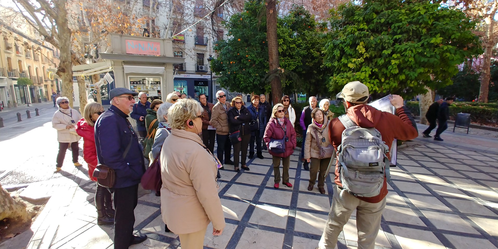 A la hora convenida, un grupo de socios de ALUMA se reunió en la Plaza de la Trinidad para dar inicio a la ruta por el encantador barrio de la Magdalena, bajo el experta guía «Damián Paseos por Granada». Comenzamos sumergiéndonos en la fascinante historia de la plaza y sus alrededores.