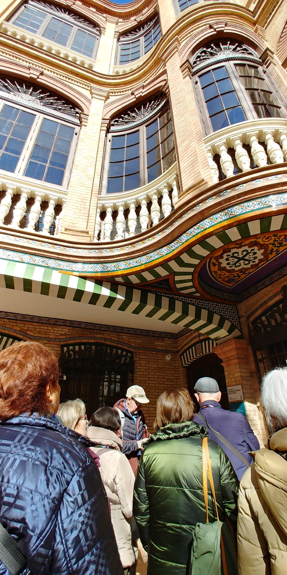 En la calle Buensuceso, exploramos un palacio del siglo XVI, actual sede de la Facultad de Traducción de la UGR, y nos deleitamos con la belleza de sus salones y detalles arquitectónicos. Aquí nos hicimos la foto de grupo. Continuando por Puentezuelas, encontramos el majestuoso Palacio de las Columnas, sede central de la Facultad de Traducción.