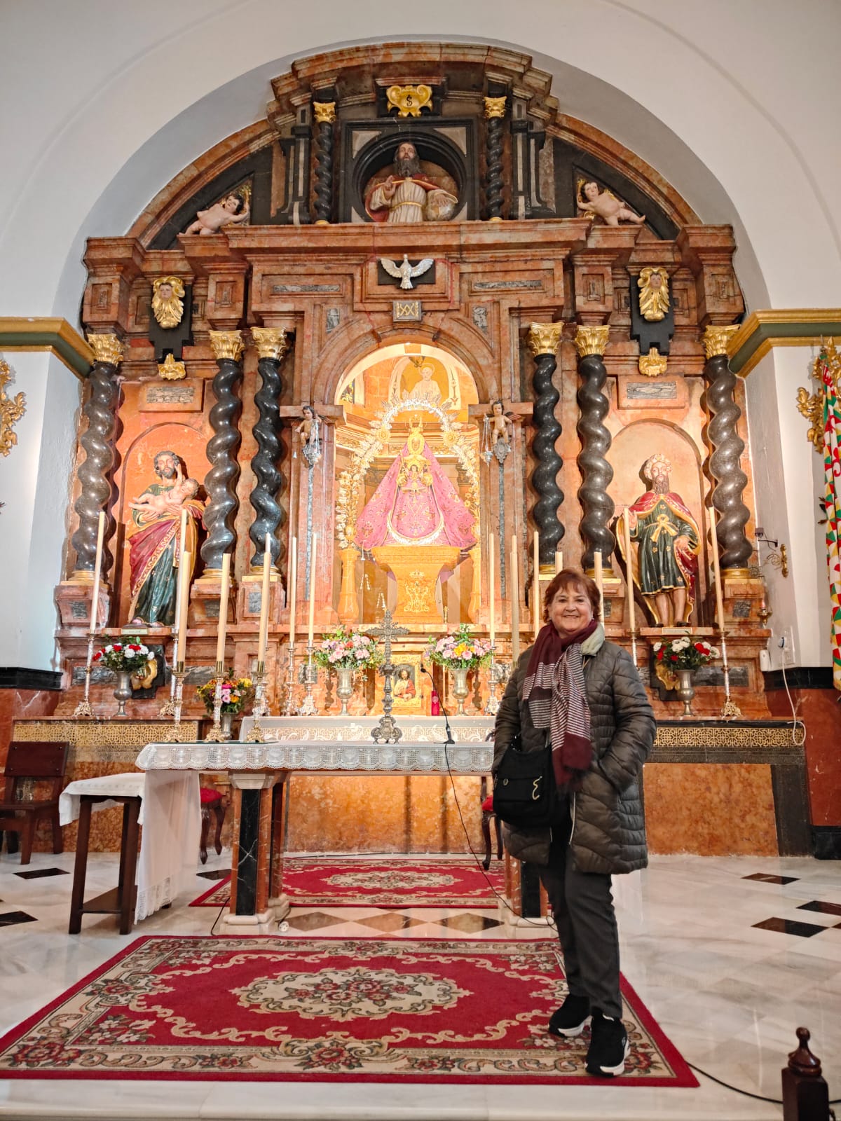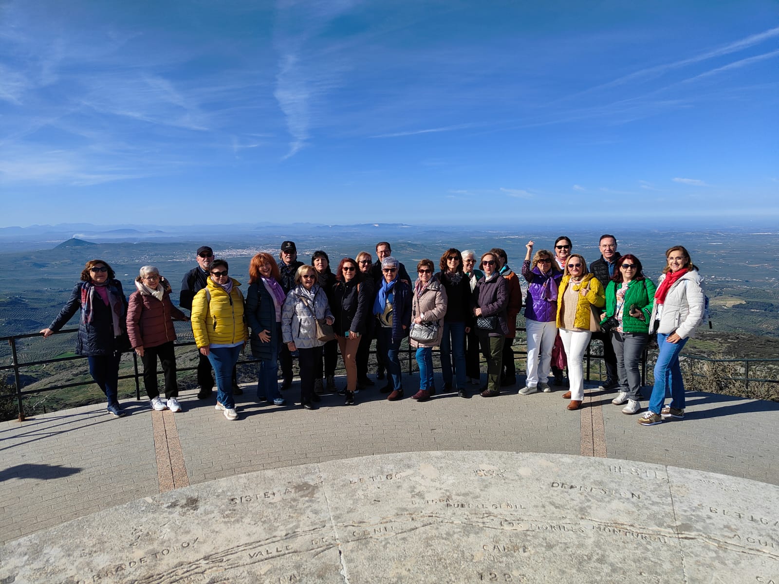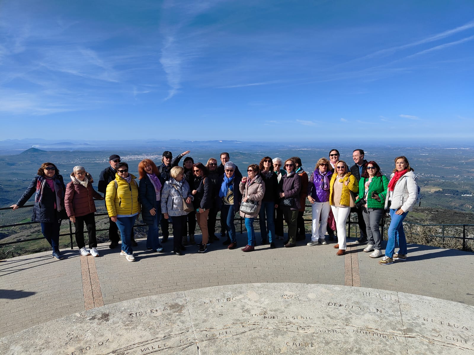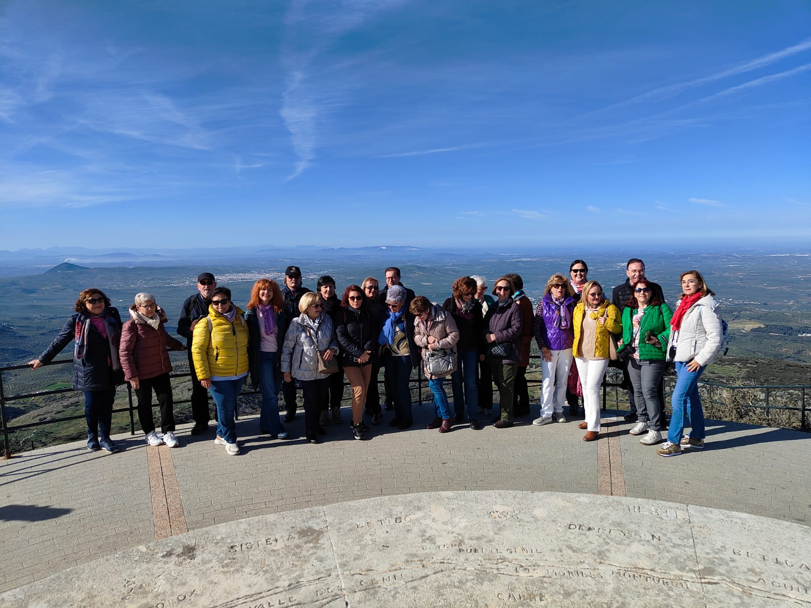 Por el camino se intenta amenizar el viaje explicando brevemente el recorrido que vamos a realizar y el contexto histórico-artístico que tendremos el placer de disfrutar en este dia de cielos azules yclaro sol. Llegamos a las 9.30 a nuestro primer destino que es el santuario de nuestra madre Maria Santísima de la Sierra situado en lo alto de un picacho con una altura de 1.220 m.