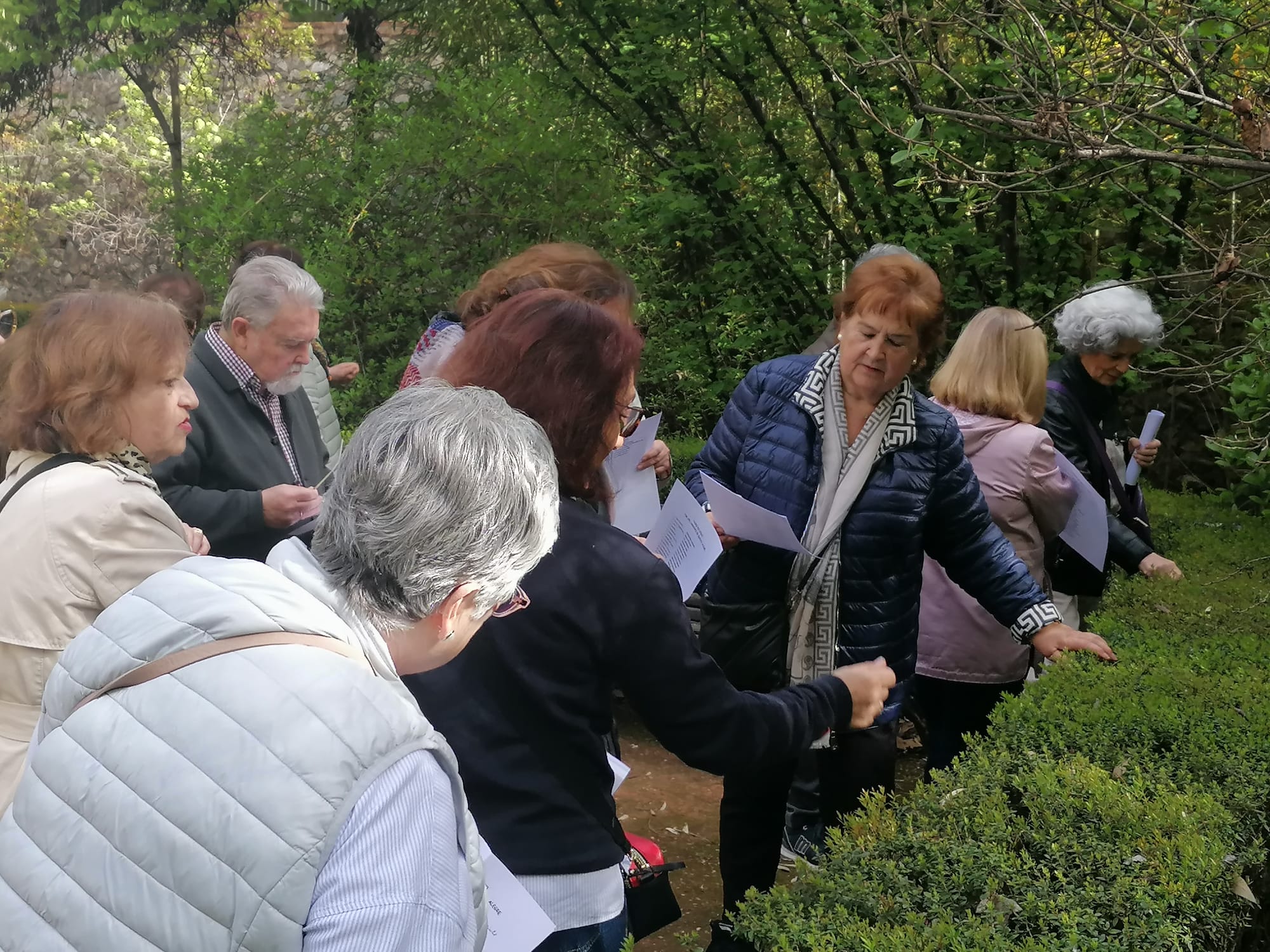 El grupo ha contado con una información escrita preparada previamente por la responsable de la actividad, Inma Cañavate: una relación exhaustiva de 50 plantas presentes con sus nomenclaturas correspondientes (nombre vulgar y científico). Así ha sido fácil cotejar cada planta con su nombre y con la explicación correspondiente sobre las principales características y utilidad de cada una, además de apreciar su color, su textura, su aroma…su belleza.