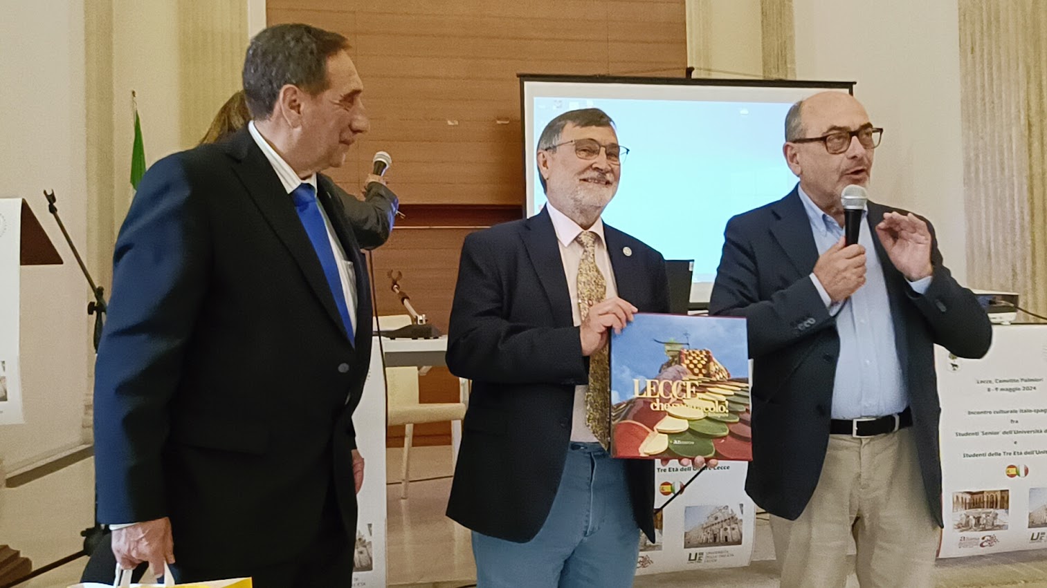 Se inició el acto académico presidido por el alcalde de Lecce Carlo Salvemini, la concejala de cultura del ayuntamiento de Lecce Fabiana Cicirillo, el Presidente de UNITRE Lecce Giovanni Diurisi, el Presidente de ALUMA José Rodríguez y el vocal de relaciones internacionales y secretario de ALUMA Rafael Reche.