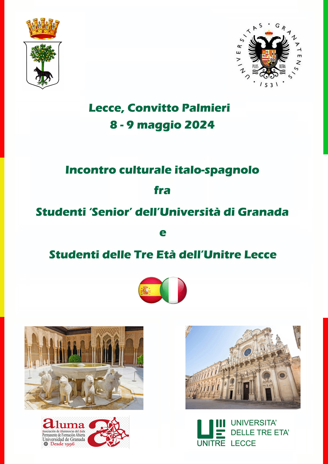Del 7 al 13 de mayo, un grupo de inquietos estudiantes (52) del Aula Permanente (APFA) de la Universidad de Granada (Granada y Melilla) y de la Universidad de la Laguna de Tenerife, organizados por la veterana asociación de alumnos ALUMA, visitamos el Sur de Italia y activamos un encuentro universitario y cultural con la Universidad UNITRE de la ciudad de Lecce.