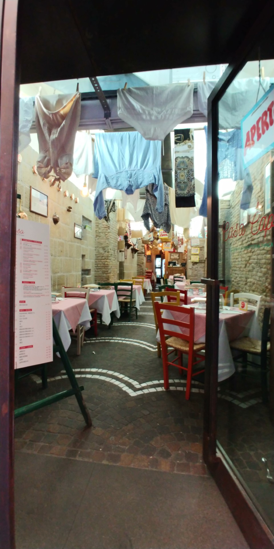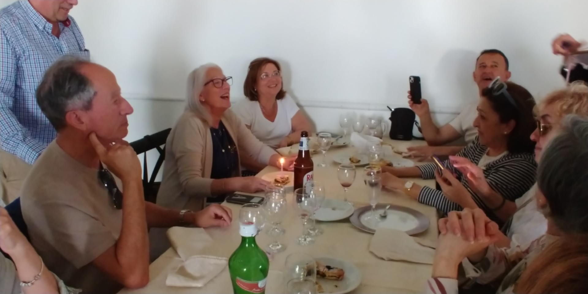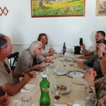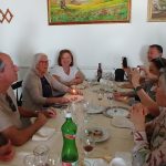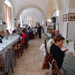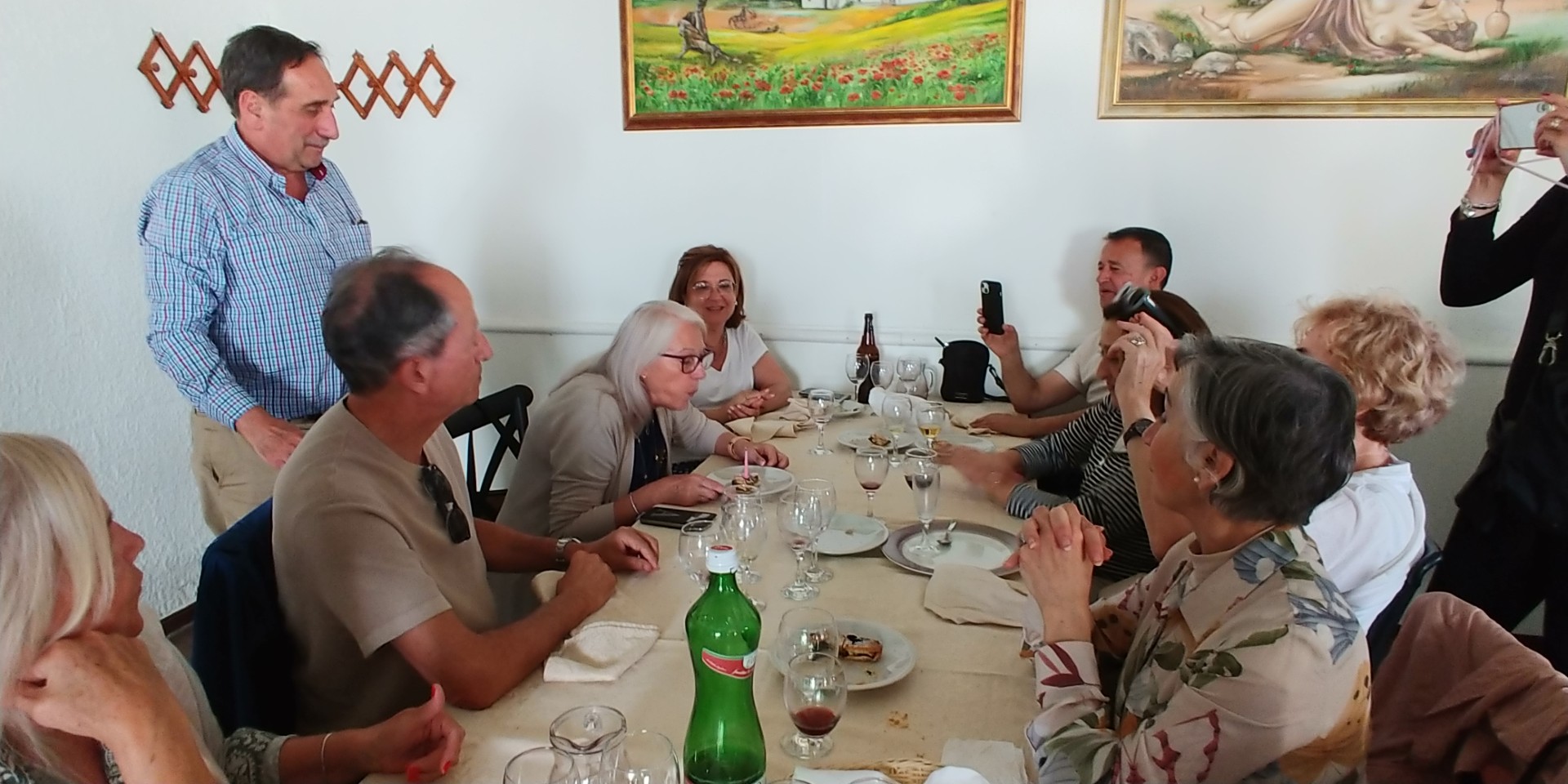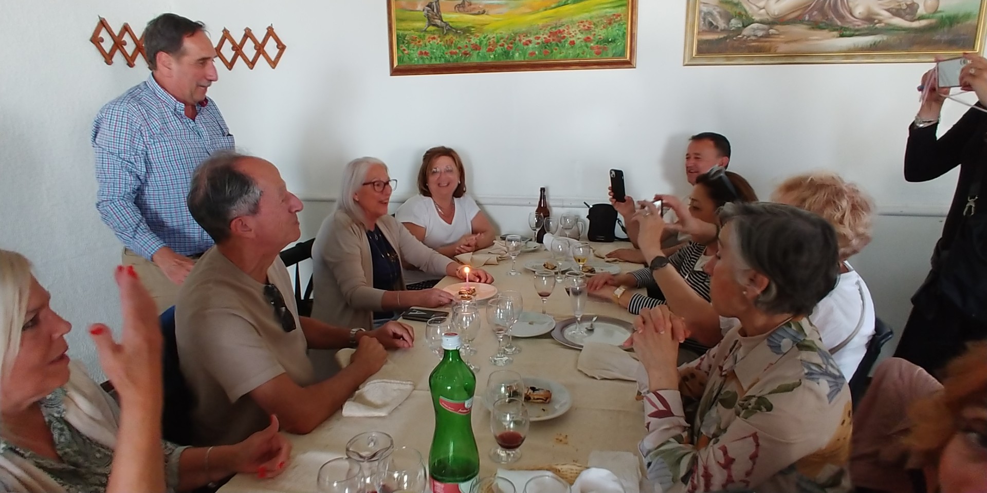 El emotivo acto inaugural continuó con almuerzo en un típico restaurante italiano, donde se compartieron las mesas entre españoles e italiano, con una deliciosa pasta, ricos vinos de la región de la Plugia (en el talón de Italia) y conversaciones distendida. No me pregunten como se entendían, pero lo cierto que la capacidad de compresión fue suficiente para compartir diálogos y risas, gozar de la comida y de una amistad, aprendimos el brindis en italiano: verso l’alto, verso il basso, verso il centro e verso il dentro.