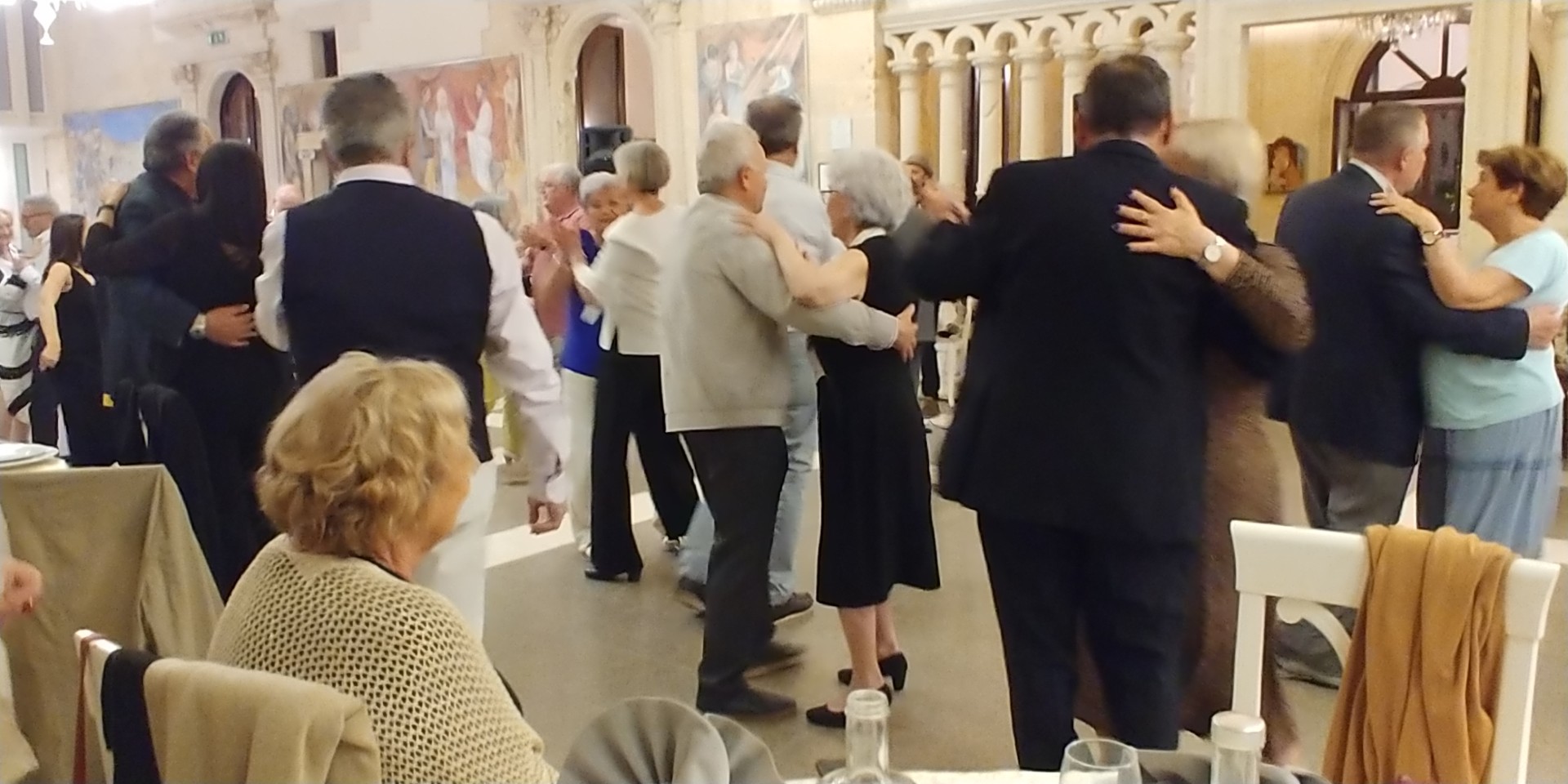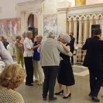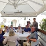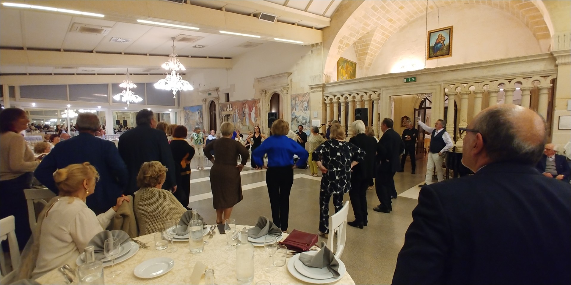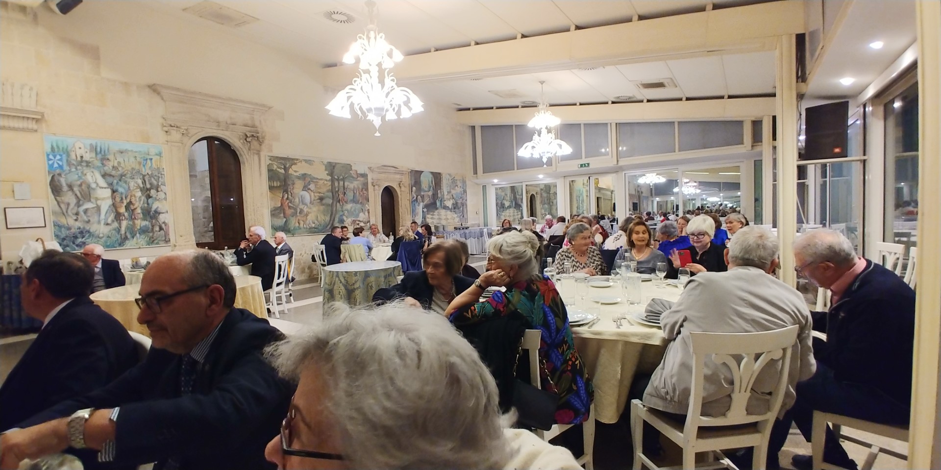 En el segundo día, con pocas horas de sueño iniciamos una visita guiada por la bella región de la Plugia y sus tesoros como Martina Franca repleta de historia y arte y Ostusi otro tesoro de belleza. Por la noche nos esperaba la cena de gala organizada por los compañeros de UNITRE Lecce en un espectacular edificio del siglo XVI. Un lugar con encanto y clase con la combinación de arquitectura unida a la magia de la elegancia y belleza singular de italianas y españolas de ambas universidades dieron una luz a la ceremonia de fraternización. Abrió la cena, un dúo de cantantes del folclore popular y una bailarina que animo a bailar. El lenguaje universal del baile, liberó la timidez inicial y dio paso a la espontaneidad, cogidos de la mano en círculos italianos y españoles danzaban dirigidos por la bella y descalza bailarina. La poesía tuvo su entrada con un poema del poeta local Giuseppe Greco recitado en italiano y Rafael Reche lo leyó en castellano.