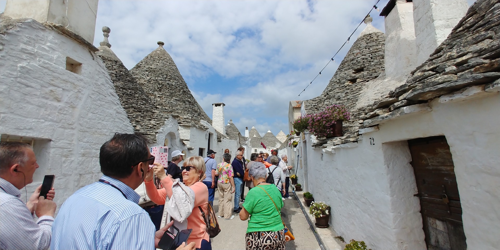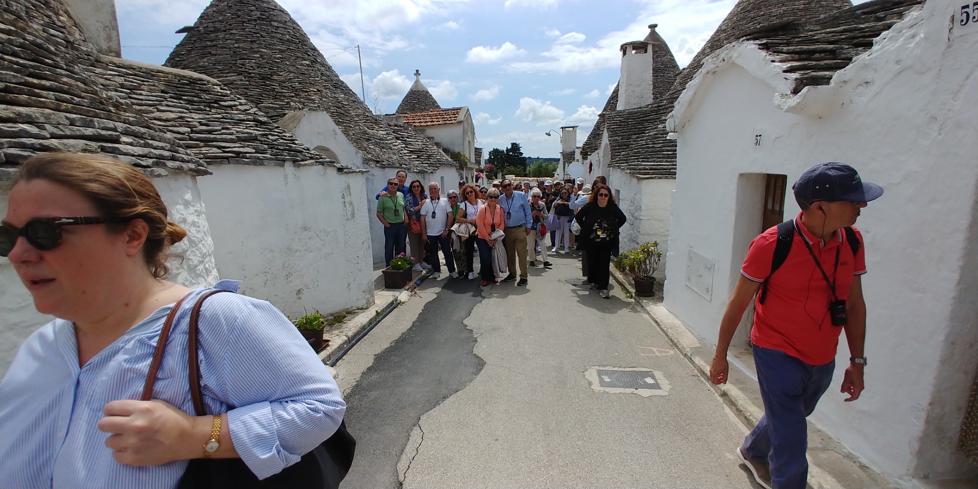 Al día siguiente con el sueño pegado en los parpados, por los intensos días vivido en Lecce, continuamos con el programa turístico y cultural previsto para recorrer las joyas del Sur de Italia, ciudades que dejaron en nuestra pupila su historia y monumentalidad como Alberobello (las casas Trulli), Matera (Patrimonio de la humanidad), Salerno, la costa Amalfitano (Positano, Amalfi, paseo en barco) y el ultimo día Pompeya y Nápoles.
