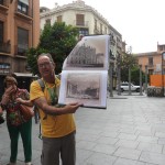 Comienza Damián ubicándonos en el antiguo Mercado de San Agustín, que fue demolido en 1988 y que albergaba a los Mayoristas de Frutas y Verduras y a comerciantes minoristas de pescado, carne, fruta y verduras. Pero anteriormente, en este lugar estuvo el Convento de San Agustín, de ahí su nombre. Este convento fue demolido en 1837 tras ser utilizado como almacén y horno por las tropas napoleónicas y la expropiación de terrenos eclesiásticos por la Desamortización de Mendizábal. Tras varios años y un incendio en la plaza formada tras el derrumbe, en 1879 se plantea la construcción por parte del Ayuntamiento de Granada, de un Mercado. Este fue inaugurado en 1881 y tras un siglo de intenso y productivo uso y varias reformas, se demuele definitivamente en 1998 para dar paso al nuevo Mercado. Solo quedaron de esta bonita edificación algunas de sus columnas, que se exponen en una esquina de la plaza del mismo nombre.