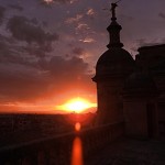 El grupo, no todos, asciende por la angosta y empinada escalera, no sin esfuerzo, que lleva a las terrazas. Desde allí, nada que comentar, solo admirar las magníficas vistas que Granada ofrece y esperar el embrujo de la puesta de sol dando paso a un atardecer en el que el Sol ofreció al mundo entero el espectáculo de las auroras boreales.