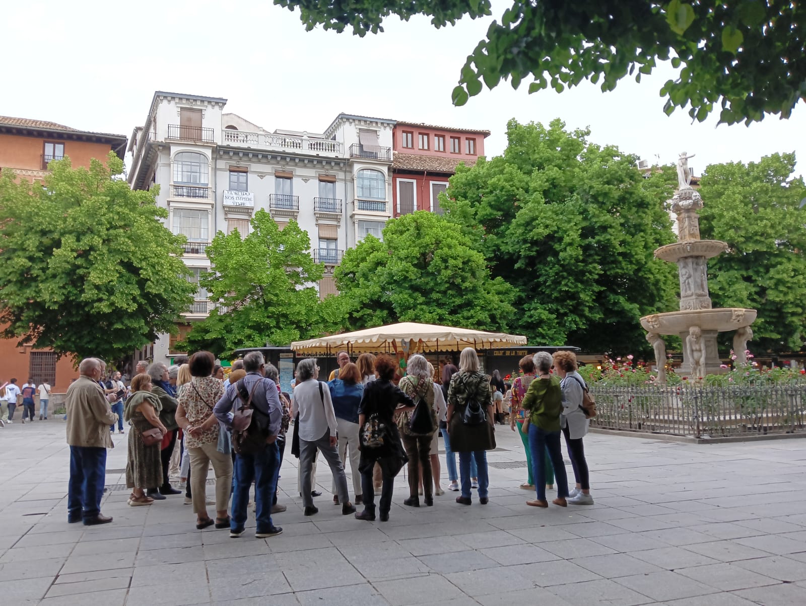 Al atardecer del viernes, 10 de Mayo, un grupo de enamorados de Granada, socios de ALUMA y acompañantes se reúnen en la Plaza de San Agustín donde esperan a Damián, un experto guía conocedor de los monumentos de Granada, su historia y leyendas.