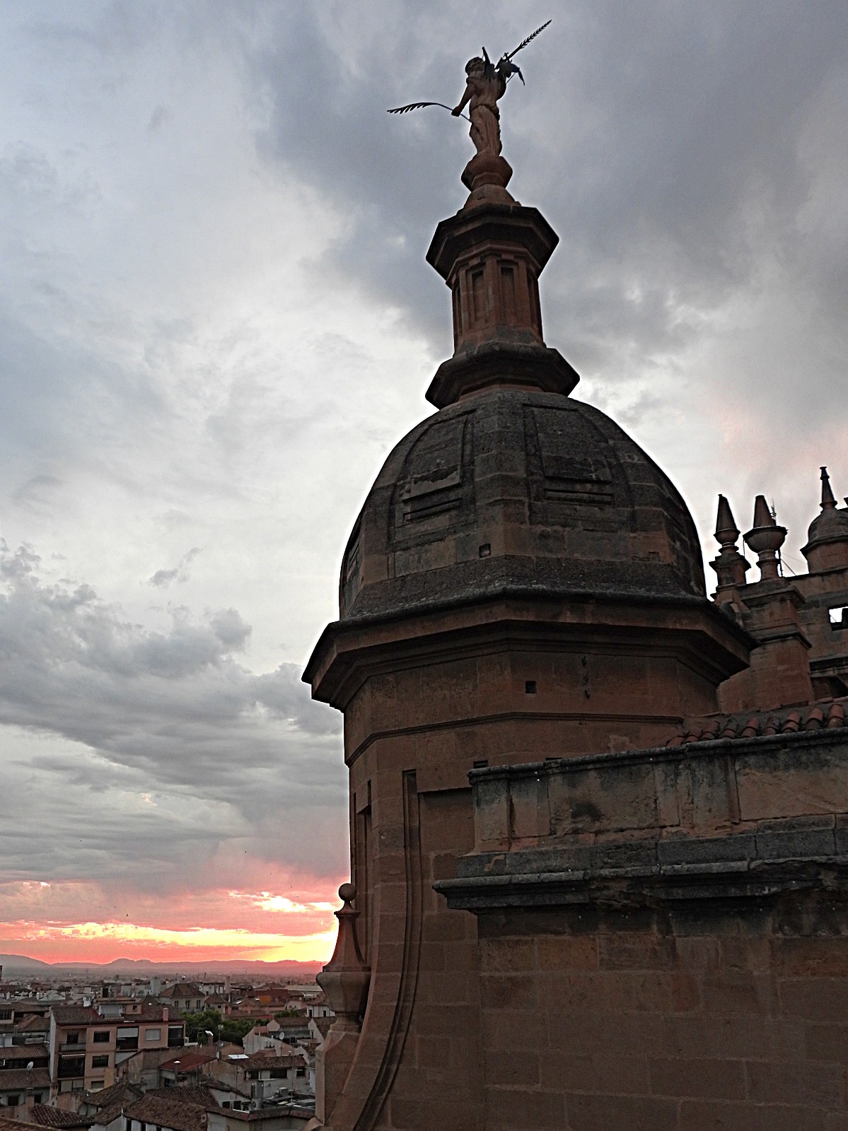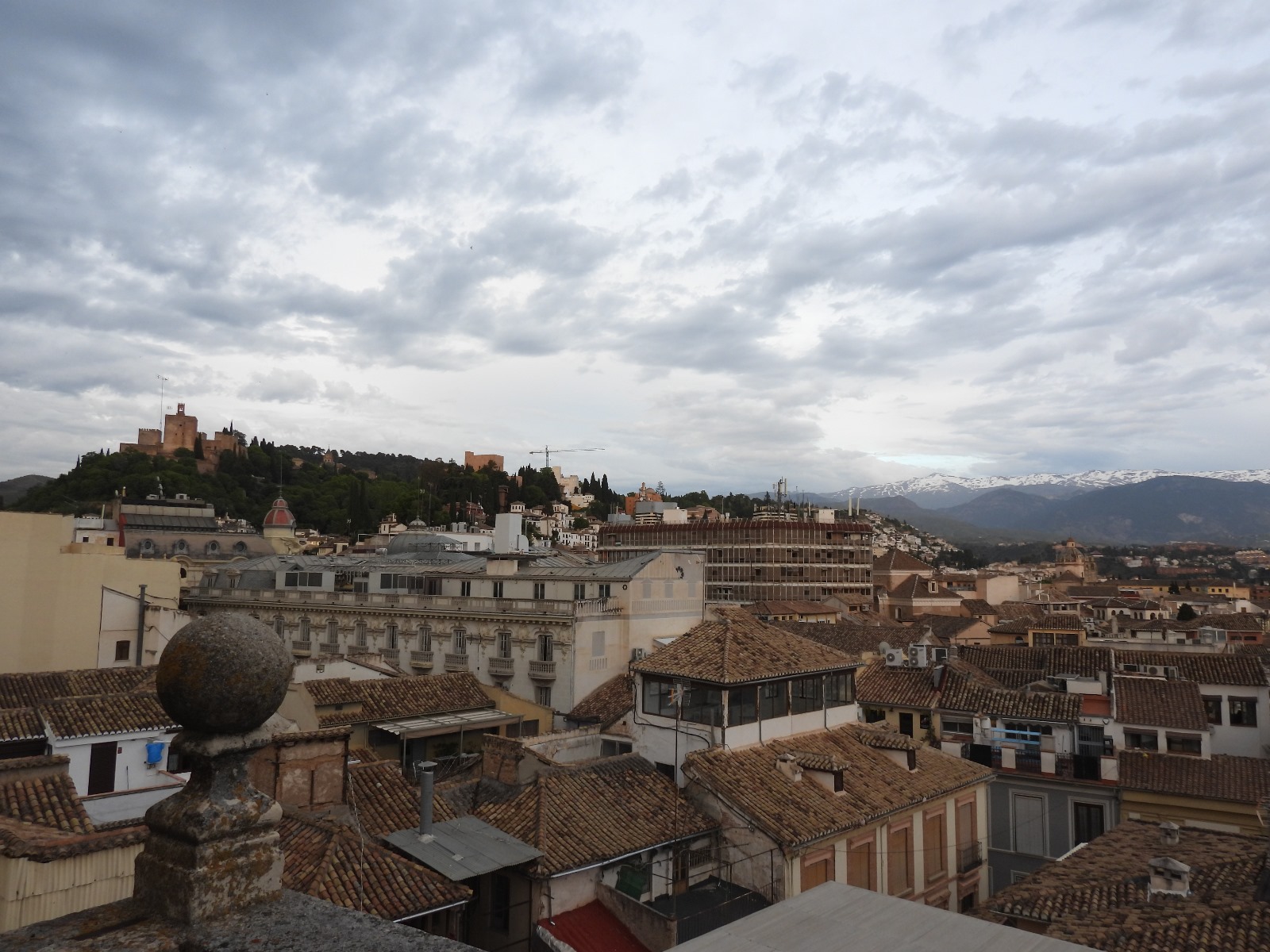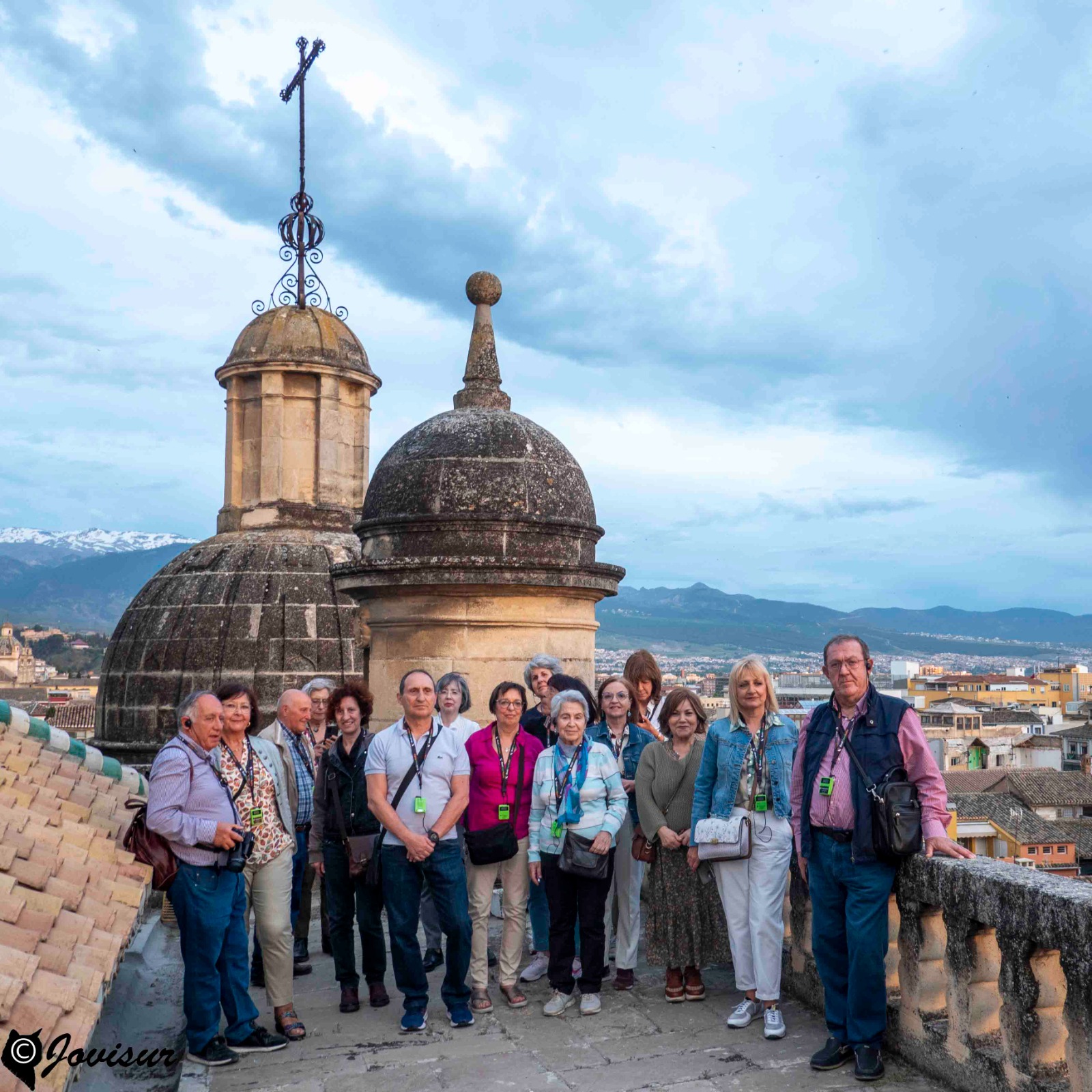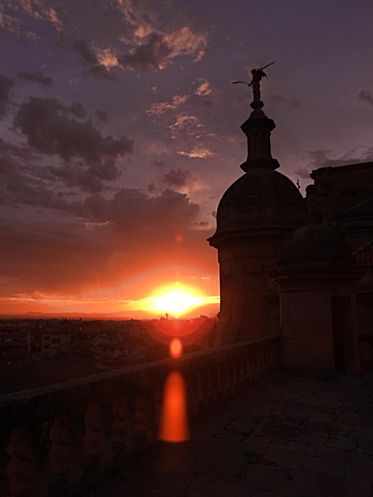 El grupo, no todos, asciende por la angosta y empinada escalera, no sin esfuerzo, que lleva a las terrazas. Desde allí, nada que comentar, solo admirar las magníficas vistas que Granada ofrece y esperar el embrujo de la puesta de sol dando paso a un atardecer en el que el Sol ofreció al mundo entero el espectáculo de las auroras boreales.