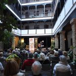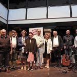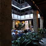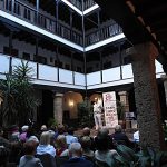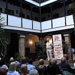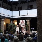 Y cuando la luz del atardecer se difuminaba en la atmosfera agradable del patio de la corrala, el presidente de ALUMA, despidió el acto, y nos invitó a todos los intervinientes a subir al escenario para recibir el aplauso de los asistentes y aprovechar la ocasión para someternos a un posado fotográfico, y así dejar constancia gráfica de tan inolvidable encuentro.