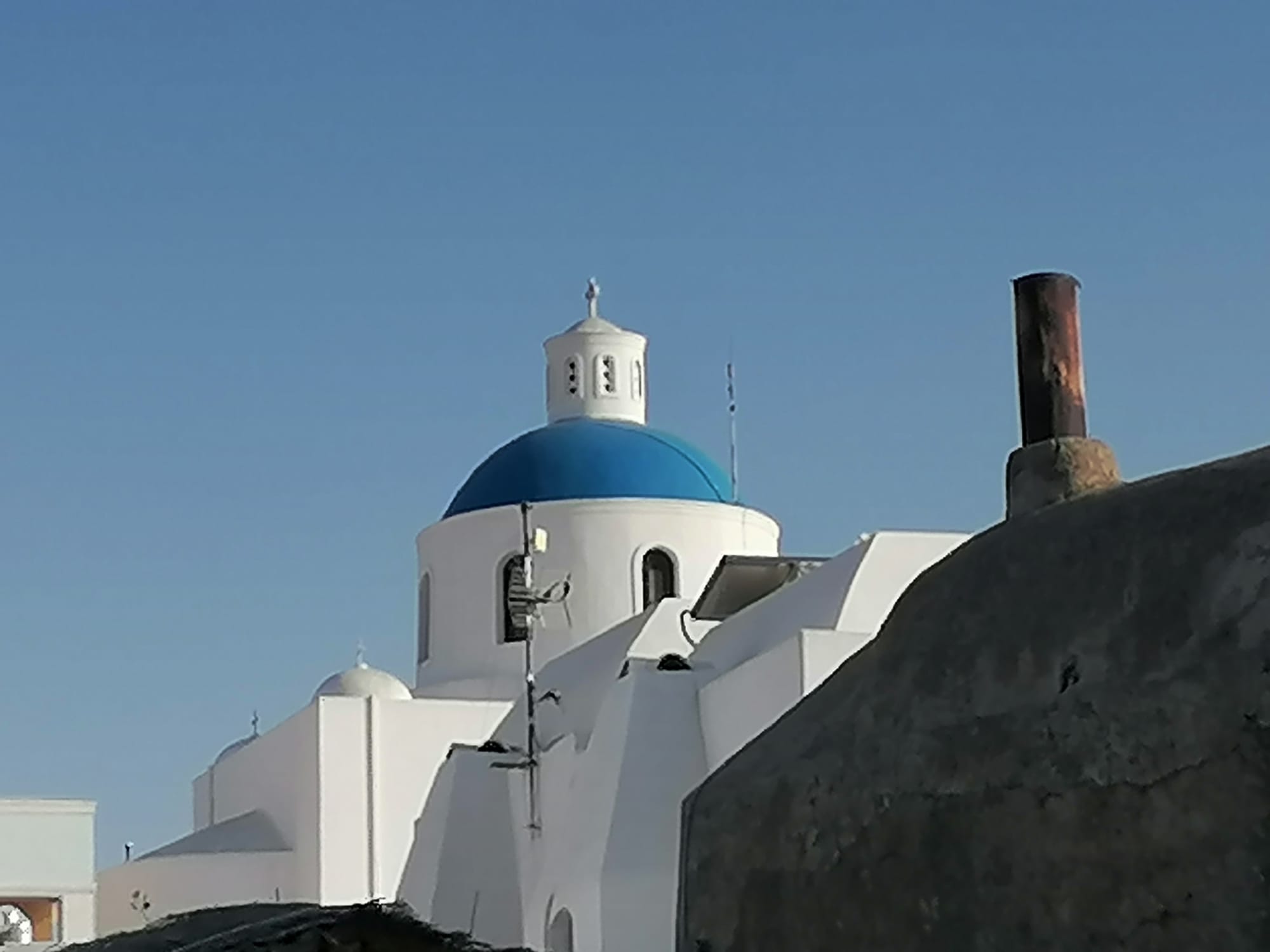 La isla de Santorini. Desde la cubierta del barco alzo la vista y me quedo extasiado contemplado las paredes verticales de los acantilados y arriba sin gravedad suspendida en el cielo esta las ciudades Oia y Thira, de casas en pendiente vestidas de blanco y las iglesias ortodoxas de cúpulas azuladas. Cada detalle es belleza. Tiene forma de media luna y en su parte interior, donde antiguamente estaba el gran volcán, Santorini tiene la magia del paisaje y el mejor ambiente.