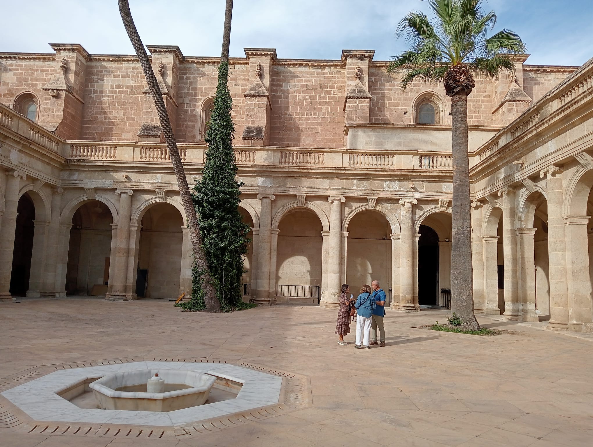 Después de almorzar, visitamos la majestuosa Catedral de Almería, testigo de más de cinco siglos de historia. Esta catedral-fortaleza, diseñada para resistir ataques de piratas berberiscos, es obra del arquitecto Juan de Orea, quien la construyó siguiendo los ideales del Renacimiento clásico. A lo largo de los siglos, ha acumulado un rico patrimonio, aunque gran parte fue destruido durante la Guerra Civil. En su interior, destacan la mezcla de estilos góticos, renacentistas y neoclásicos, como los arcos ojivales y las columnas corintias.