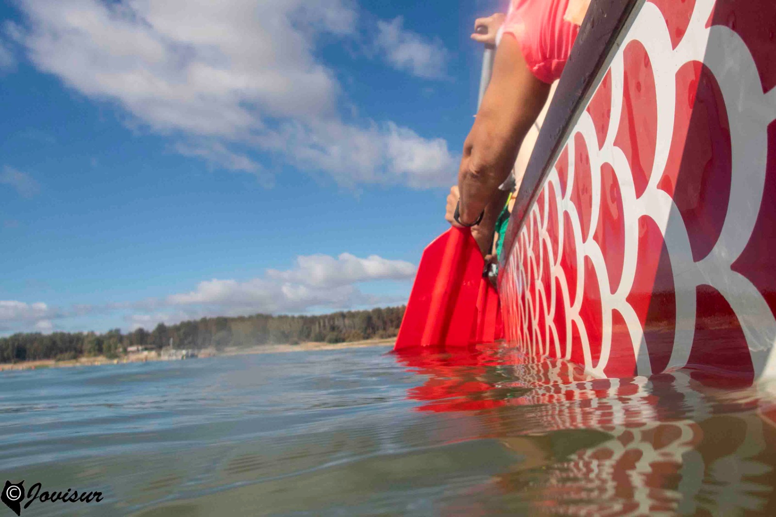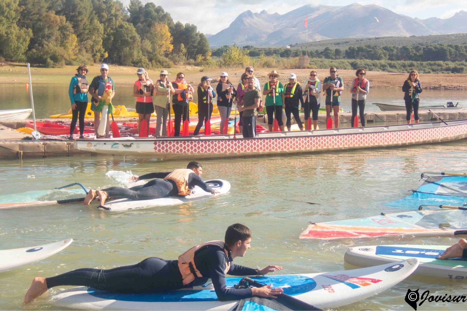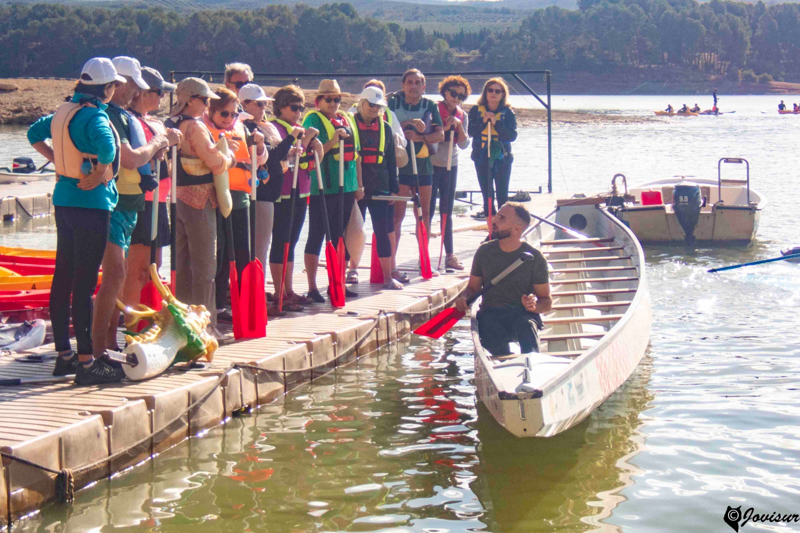 Como todo lo nuevo y por descubrir, te sumerge en la apertura de los sentidos… El día se presenta despejado. El ambiente sereno con el bullicio de los jóvenes en su primera experiencia de los Deportes Naúticos… ¡y allí nos lanzamos los Mayores con el DRAGÓN BOAT!…Pinceladas de instrucción de la Mano de Mario…y la Primera palada… Unión de Fuerza-Mente- Salpicar agua y TODOS a Una…Se avanza.. En los pequeños descansos surge el Compañerismo,.. Las Risas… La Cercanía….