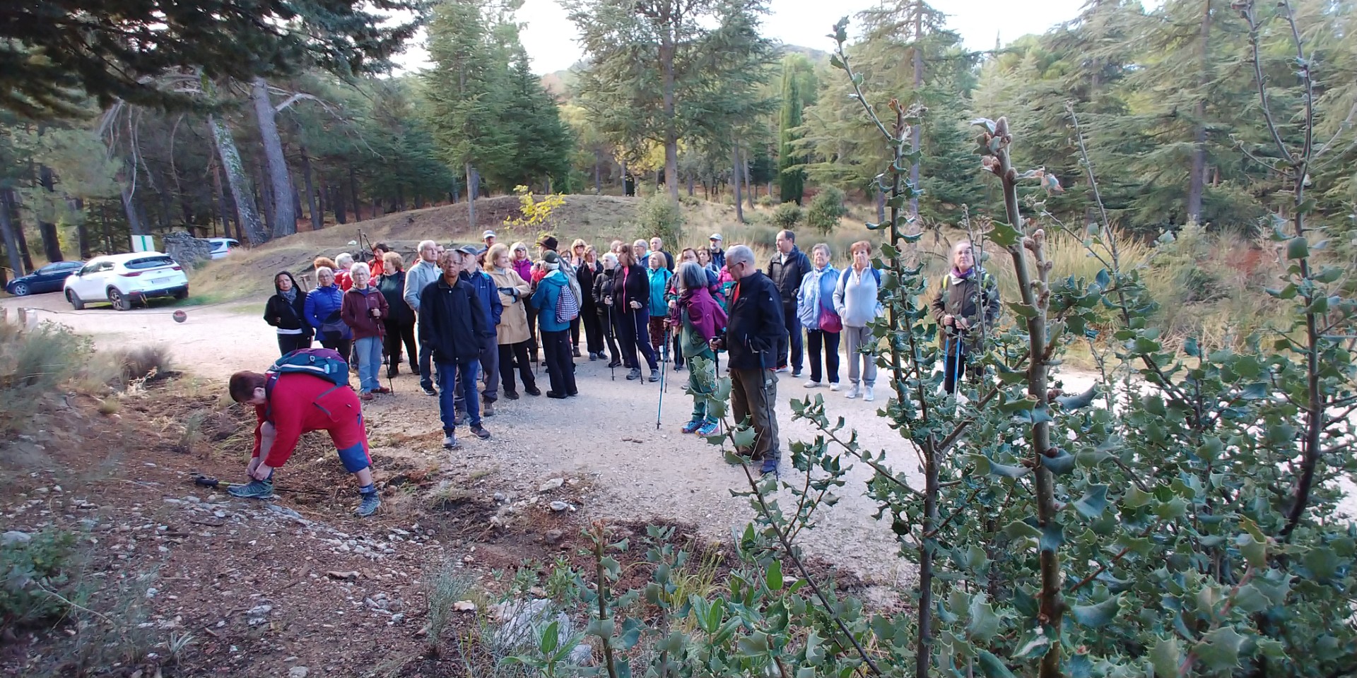 En la Ruta Botánica de la Fuente de la Teja (Parque Natural de La Sierra de Huétor), empezamos con un espectacular día con la compañía nuestro guía, Señor Francisco Valle Tendero profesor universitario de la UGR. Una vez en el autobús él nos fue contando un poco de sus experiencias y anécdotas en este campo de la botánica, llegamos a la entrada del parque y nos fuimos adentrando por el camino viendo una impresionante vegetación y el profesor explicándonos con fervor y pasión los diferentes árboles, plantas y flora que íbamos descubriendo, haciendo paradas didácticas e ilustrativas de la topografía, geología del terreno y cómo afectan las diferentes estaciones del año la naturaleza de la vegetación y la flora en cada una de ellas. Seguimos caminando hasta llegar a la Fuente de Teja, donde contemplamos unas impresionantes vistas de los picos de las montañas que nos rodean; y tomamos un pequeño descanso para hidratar, conversar, y tomar fotos para el recuerdo.