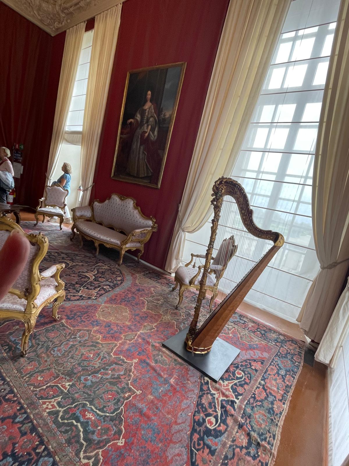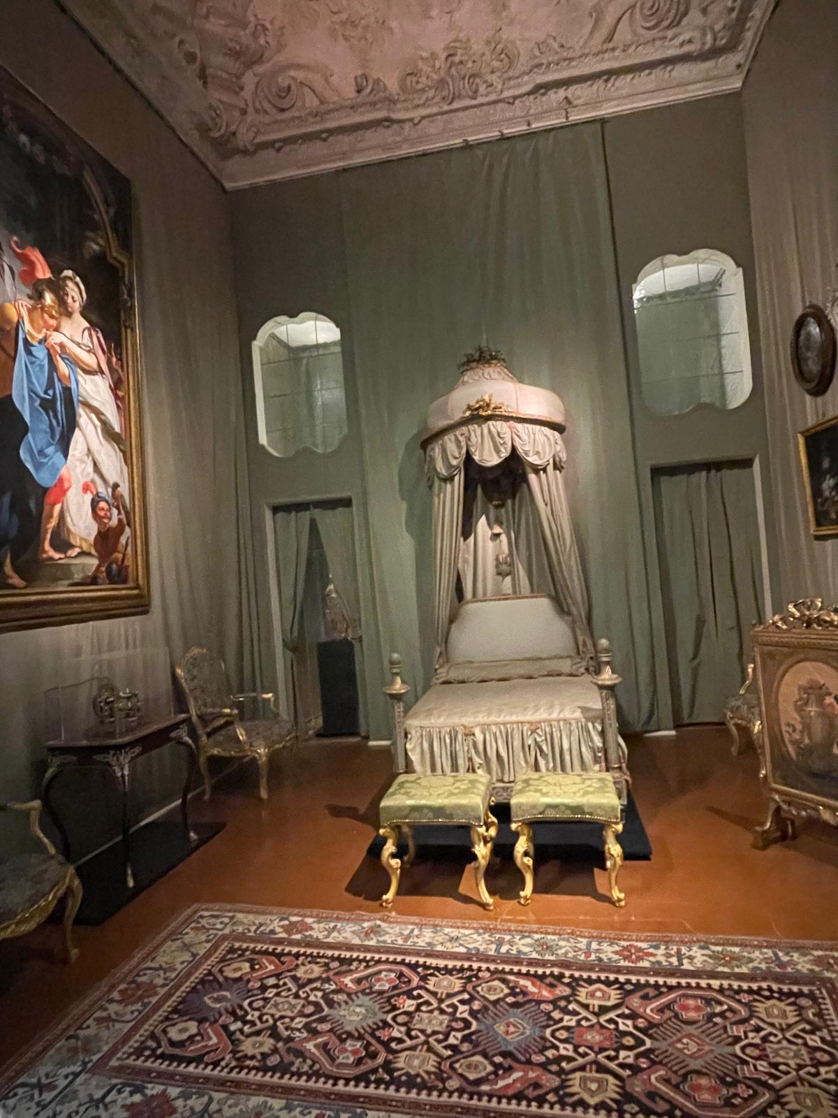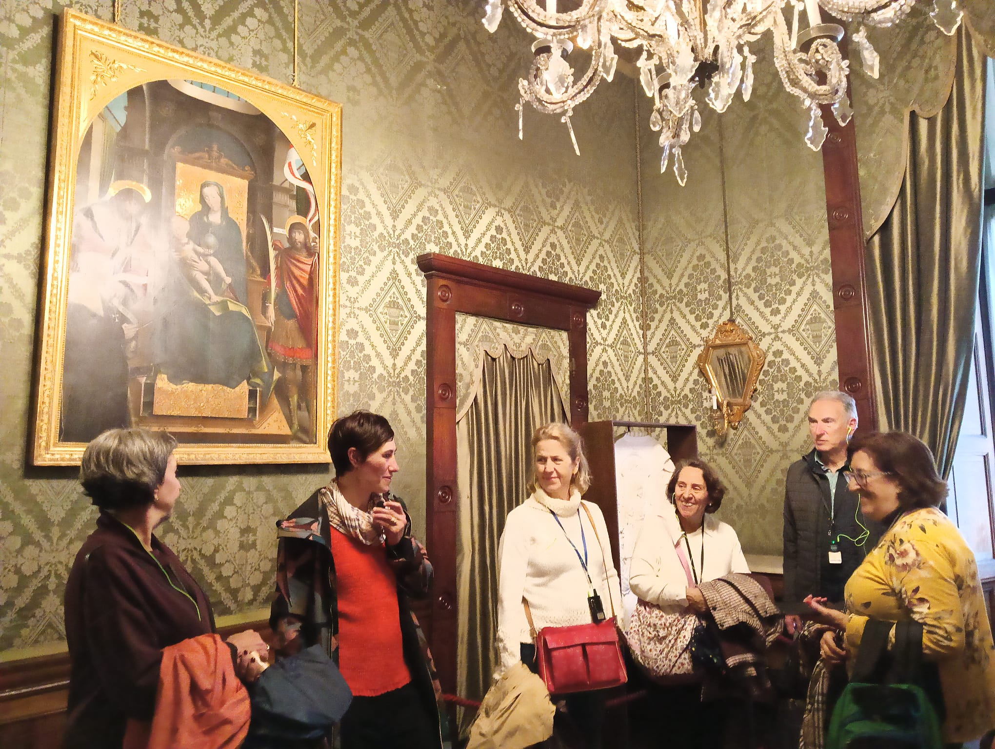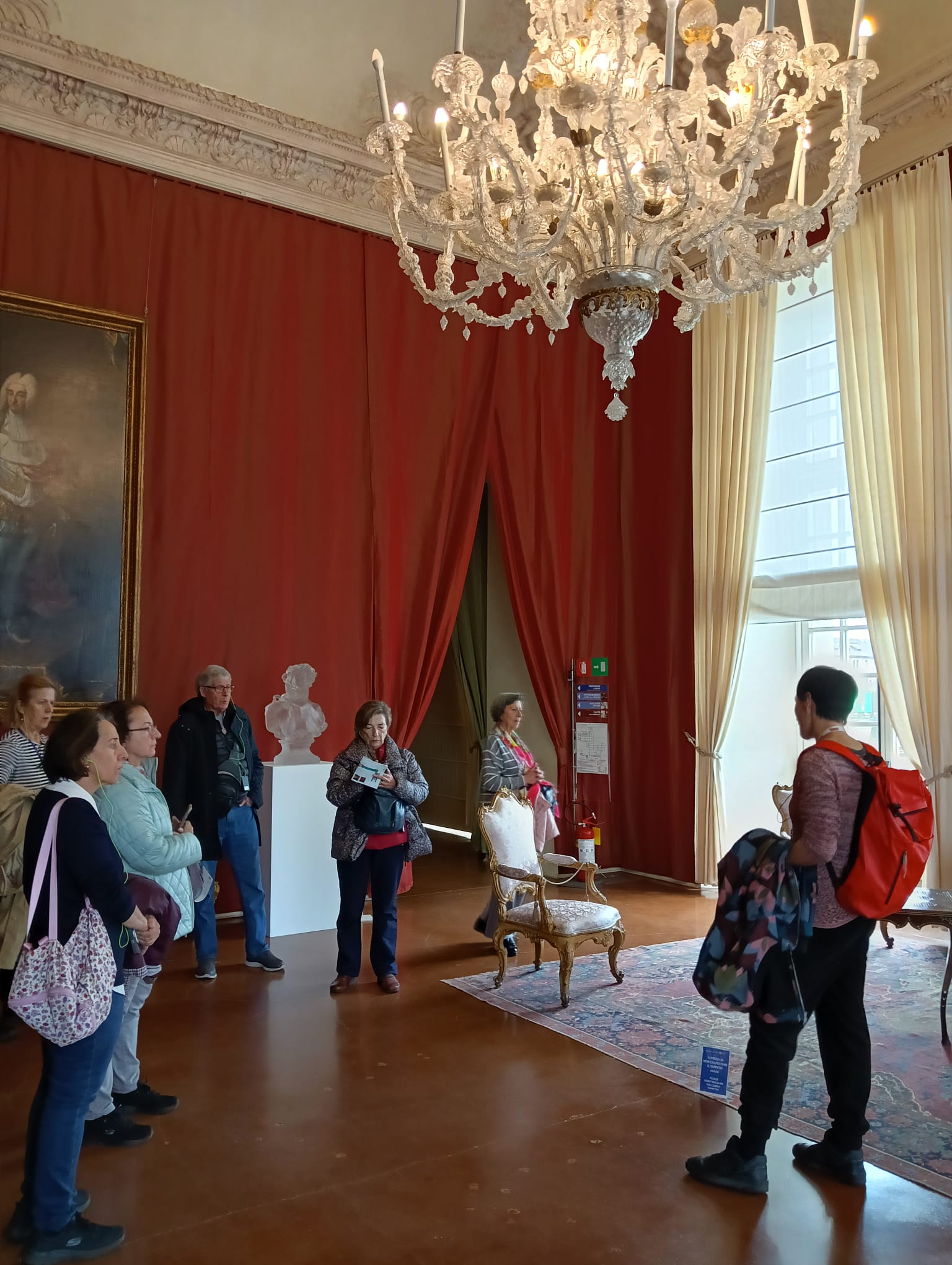 Por la tarde, nos desplazamos hacia el Pabellón de caza de Stupinigi, que se encuentra a 10 km de Turín, hacia el suroeste. Es un precioso palacete de estilo rococó, residencia de caza de la Familia Real de Saboya. Fue diseñado por el arquitecto Felipe Juvara. Y su decoración interior está realizada con exquisitas y variadas pinturas al fresco, con motivos florales, tanto en las paredes como en el techo, y que tenían que estar en consonancia con la decoración de las puertas y postigos, también con pinturas. Cada sala era diferente. También alberga una de las mayores colecciones de mobiliario. Todo ello corrió a cargo de artistas, arquitectos y artesanos prestigiosos traídos de varias localidades del norte de Italia.