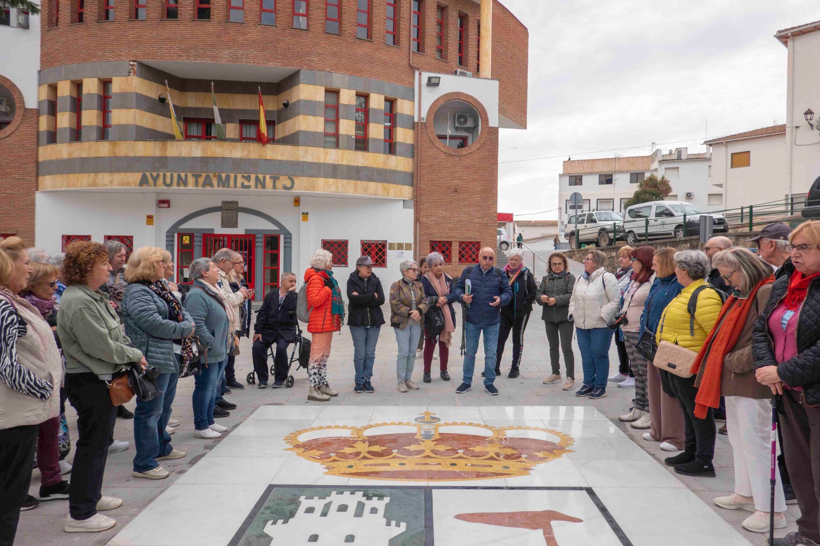 Desde allí nos dirigimos a la plaza de la Constitución, en donde nos esperaba nuestro guía y mi amigo, Vicente García Espínola, que nos empezaría explicando el escudo de Montejícar, dibujado en piedra en la plaza delante del ayuntamiento. Poniéndonos en antecedentes de nuestro itinerario del día y ofreciéndonos dos opciones para hacer más llevadero el programa que nos presentaba: un grupo nos iríamos con él y otro grupo con mi hermana Alicia.
