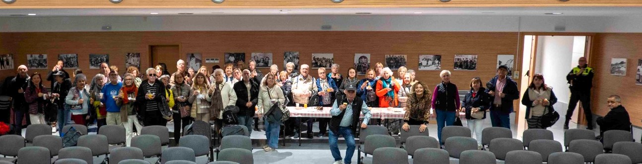 Al llegar al pueblo la primera parada fue en la Casa de la Cultura, en donde nos esperaba la concejal María Coral Hayas Iglesias, que nos recibió muy amablemente, excusando al alcalde por no haber podido estar, y nos obsequió con mochilas y gorras, además de con un suculento desayuno con dulces típicos de las panaderías del pueblo, que fueron muy bien acogidos por todos; aparte de poder admirar una excelente exposición de miniaturas obra de Aurelio, un vecino del pueblo.
