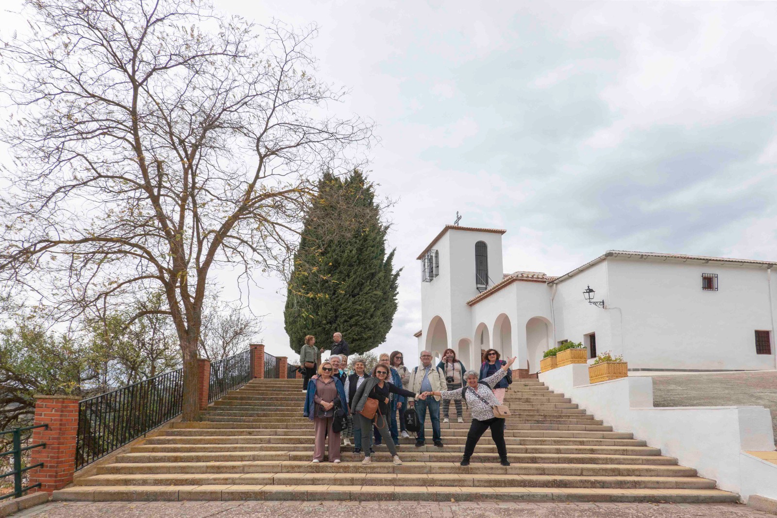 A la par el otro grupo, con Alicia y nuestro fotógrafo Pepe Vives, hicieron una magnifica visita por los distintos miradores del pueblo, desde donde pudieron contemplar impresionantes vistas del mismo. Para juntarnos ambos grupos y subir juntos por el camino hasta llegar a la Ermita de la Virgen de la Cabeza, nuestra patrona junto con San Andrés. Es la sede de la Hermandad de la Virgen de la Cabeza, constituida en 1636; y objeto de una gran devoción mariana, cuyas principales romerías son en abril y junio de cada año; y en donde se representa la fiesta anual de moros y cristianos.