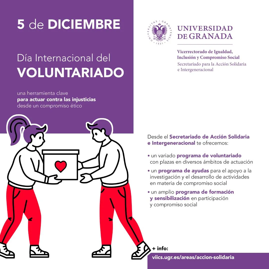 La sede de la Junta de Andalucía en Granada acogió el acto institucional del 5 de diciembre con motivo del Día Internacional del Voluntariado. En el evento participaron destacadas personalidades, como Matilde Ortiz, delegada territorial de Inclusión Social, Juventud, Familias e Igualdad; Ana Belén Sánchez, concejala del Ayuntamiento de Granada; Elena María Duque, diputada de Bienestar Social, Igualdad y Familia; y Sergio Díaz Padilla, vicepresidente de la Plataforma de Voluntariado de Granada.
