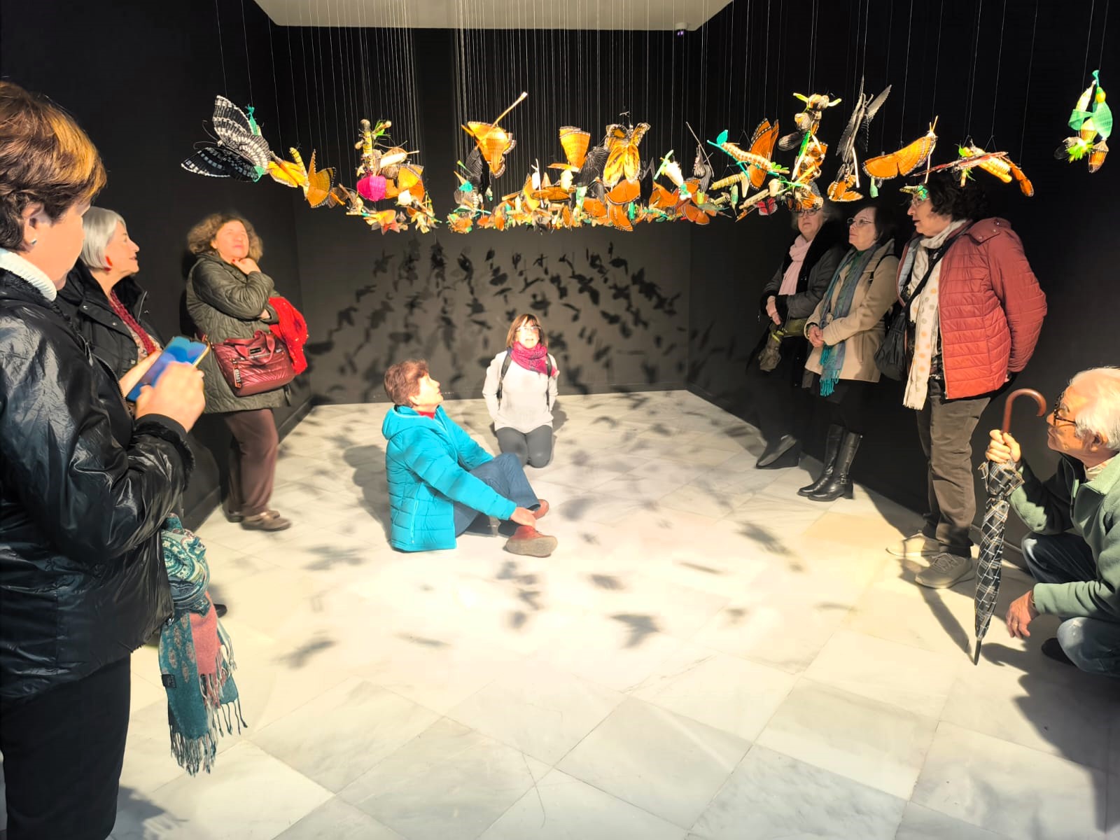 Pero lo más espectacular de la visita han sido las mariposas monarcas, las cerca de trescientas mariposas realizadas con crin de caballo, que flotaban en el aire llenas de color, de magia y de ilusión.