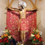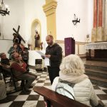 Subimos hasta la Ermita del Cristo del Calvario donde nos estaba esperando Encarna, una vecina encargada de abrir y cerrar la puerta de la Ermita. Lo primero que nos fijamos al entrar fue en lo limpia y cuidada que estaba. Enseguida llegó José Ramón Rodríguez Carrión que era nuestra guía y nos iba a acampañar durante toda la jornada para conocer el pueblo y sus monumentos. Desde el primer momento nos dimos cuenta lo cordial y entusiasta que era, y sobre todo la pasión que ponía en sus explicaciones, queriendo recuperar a toda costa restos históricos romanos, musulmanes y cristianos de su pueblo. Es un enamorado de su entorno y de su pueblo.