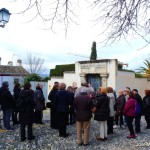 El grupo de 30 personas llega puntualmente al lugar de encuentro: la Plaza de San Nicolás, a escasos metros del mirador. Es una plaza recoleta, tranquila, agradable, presidida por el Colegio Gómez Moreno que hoy aporta el silencio propio del descanso de la actividad escolar. Damián, orgulloso de sus orígenes albaicineros, nos anima a disfrutar de este espacio no invadido, de momento, por lo que él llama: turismo de bajada, tan de moda en los últimos tiempos. Muy cerca, el Carmen de Atarazanas, antiguo cine de verano del barrio en los años 60. Nos recuerda Damián el significado del término “atarazanas” como el lugar relativo a la fabricación de cuerdas ligado al cultivo del lino en la Vega.