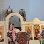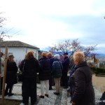 La iglesia de San Bartolomé es una construcción del renacentismo mudéjar granadino. De una sola planta, sin capillas laterales, con cubierta de tradición mudéjar. Su torre destaca por sus cinco órdenes de ventanas todas distintas y decoradas con azulejería y molduras de separación de los tres pisos. Desde 1842 está suprimida como parroquia. Actualmente acoge el culto de la comunidad ortodoxa rusa en Granada adoptando la estética propia de esa liturgia. Una de las componentes de esta comunidad y miembro del coro, nos da la bienvenida y nos explica las muchas similitudes existentes entre su credo y el de la iglesia católica, ambas cristianas y procedentes del mismo Evangelio de Jesucristo. Tras el encendido de velas por cada uno de los asistentes y de escuchar un bonito recital de canciones litúrgicas y populares interpretadas por el dúo formado por dos mujeres .una rusa y una ucraniana, nos despedimos no sin antes degustar el vino especiado y los dulces con los que nos han obsequiado. Una bonita experiencia la de este domingo que ha sido indulgente con el grupo pues ha esperado el fin del paseo para enviarnos un nuevo chaparrón.