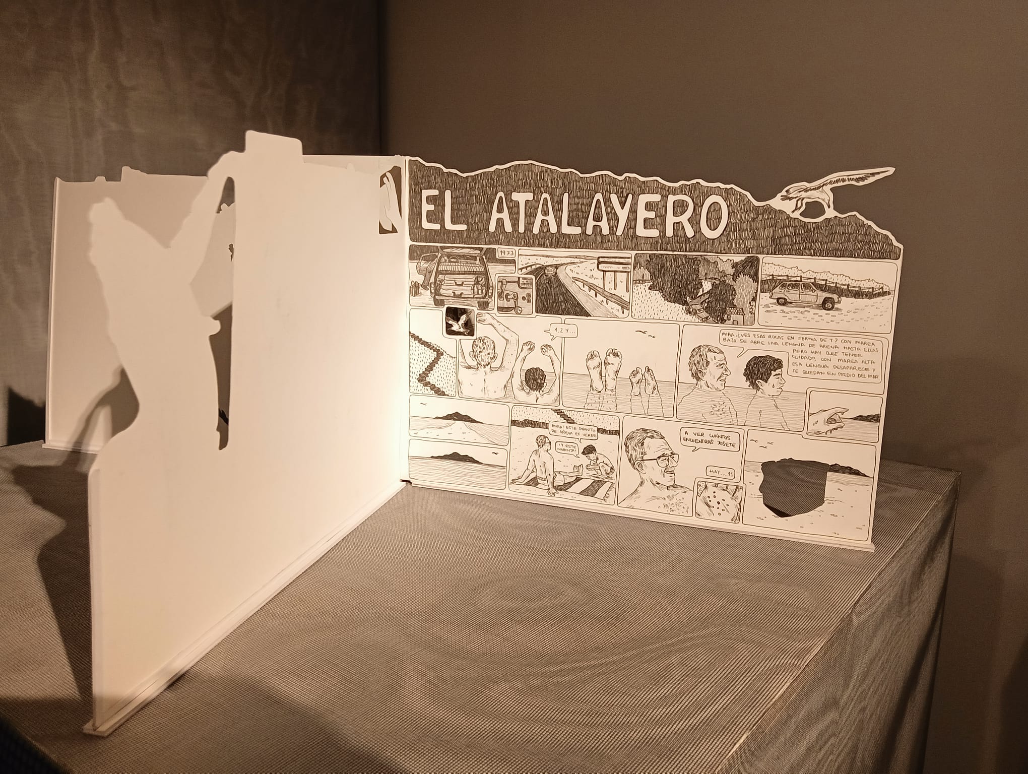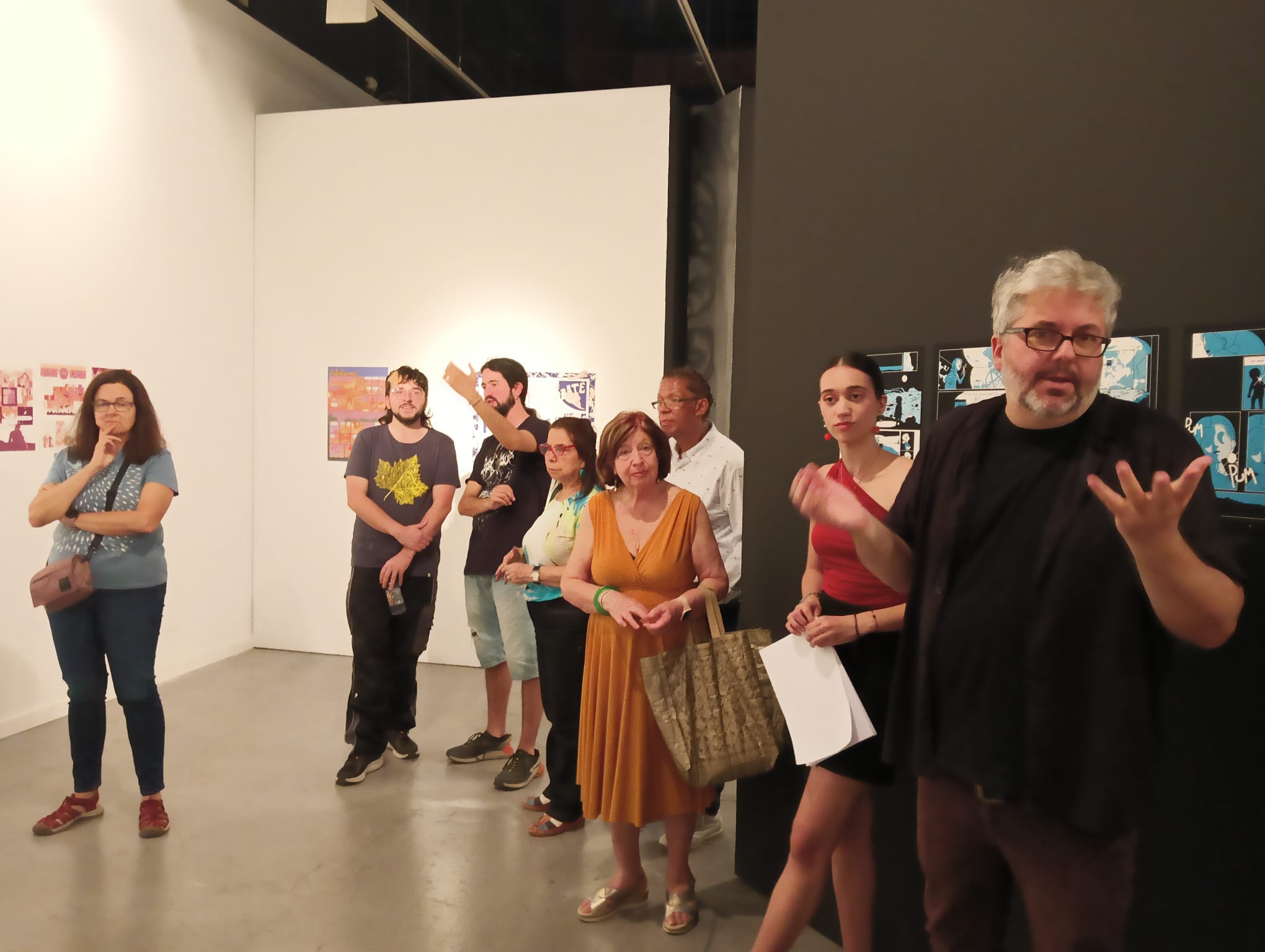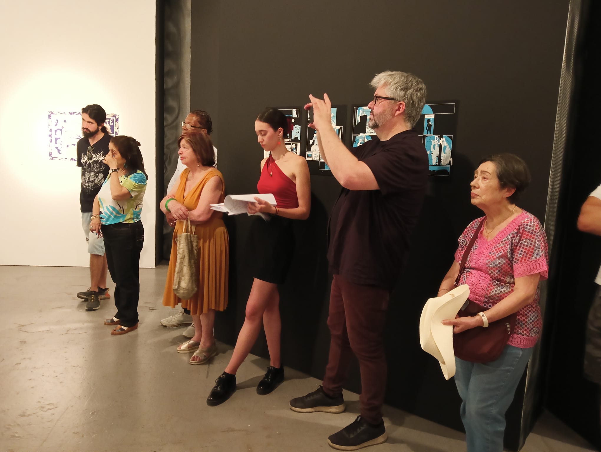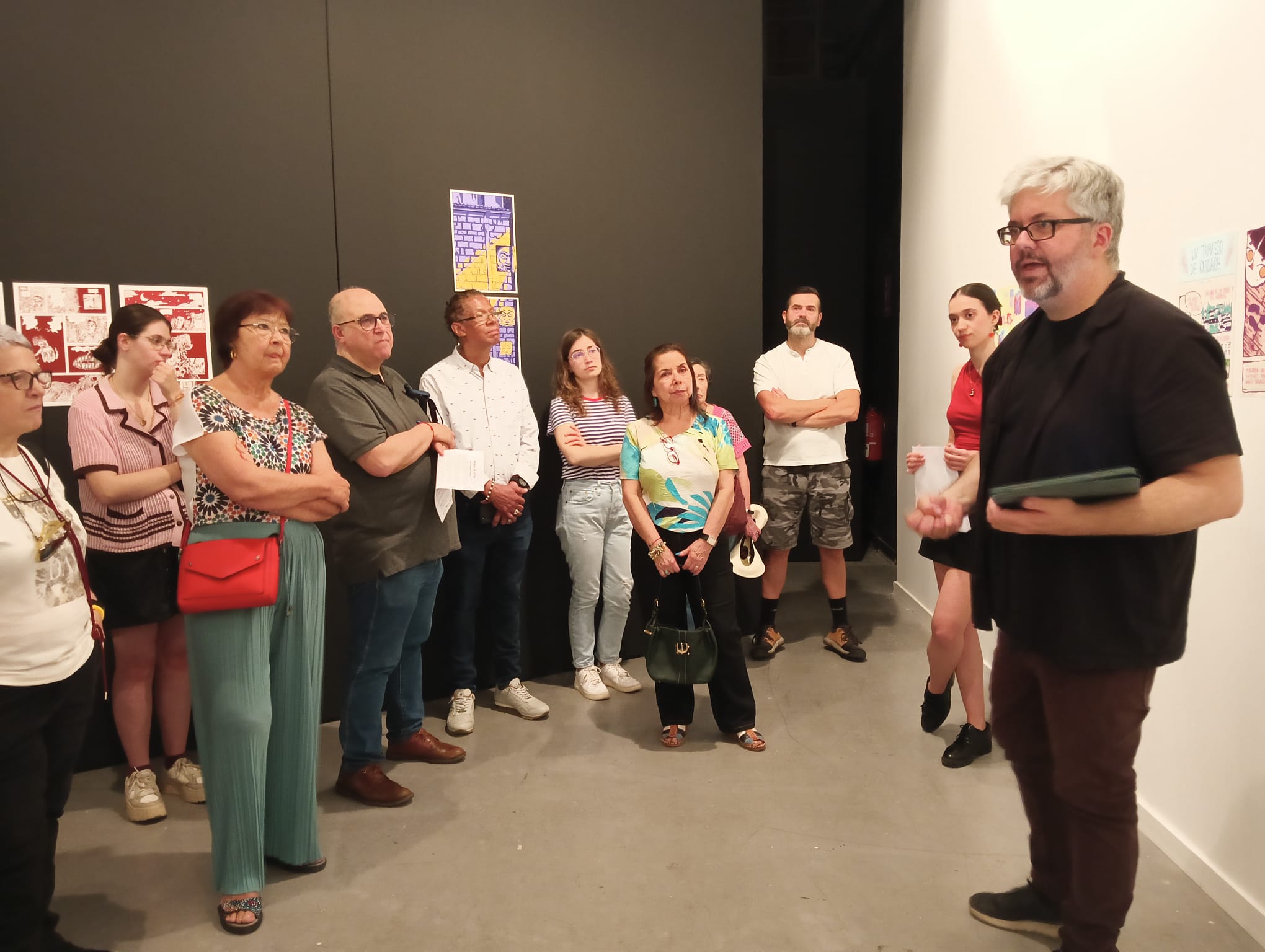 Jesús y Lola nos guiaron por la exposición, explicando su propósito y objetivos: dar visibilidad al cómic contemporáneo, fomentar el diálogo entre creadores locales e internacionales y recuperar la memoria de lugares que, de otro modo, pasarían desapercibidos.