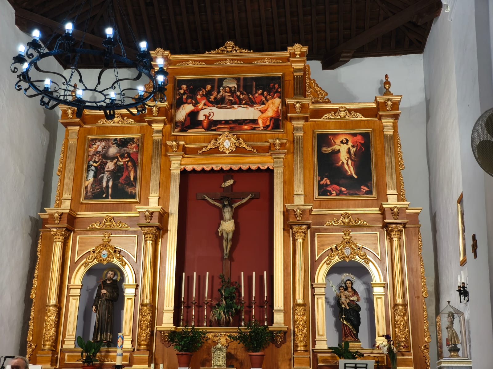 Abrieron la iglesia para nosotros. Construida en el siglo XVIII. Edificada sobre lo que fue una antigua mezquita; ha sufrido diversas reformas a lo largo de los años. El estilo, combina elementos barrocos con toques neoclásicos. Su fachada de gran belleza está adornada con detalles escultóricos. En el interior, destaca el artesonado sobre el altar. La patrona es la Virgen del Rosario, también hay diferentes imágenes religiosas de gran belleza . Destaca el Nuevo Retablo, realizado no hace muchos años, con la aportación económica principalmente de los vecinos del pueblo.