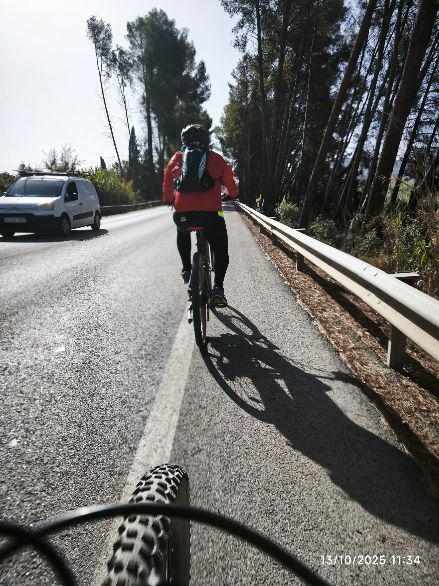 Tras la pausa, emprendimos el regreso con buen ánimo. El camino de vuelta tuvo sus repechos, pero también sus conversaciones tranquilas, pequeñas paradas para reagruparnos y el gusto de rodar al sol. La entrada a Granada la hicimos por la Chana y el Camino de las Vacas, nombre humilde para un tramo que nos recibió con el rumor de la ciudad al fondo.