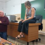Tras su intervención, los compañeros y compañeras del Taller de Teatro del APFA ofrecieron una emotiva lectura dramatizada de dos escenas de su obra A paso lento, que puso el broche artístico a la jornada.